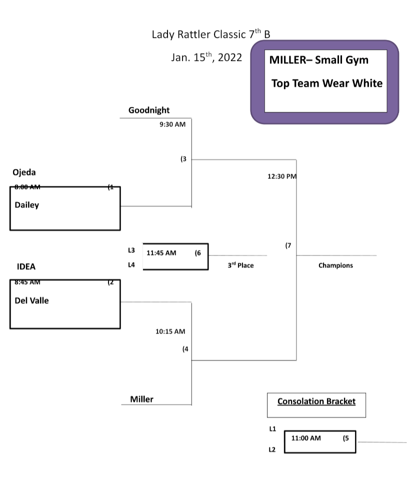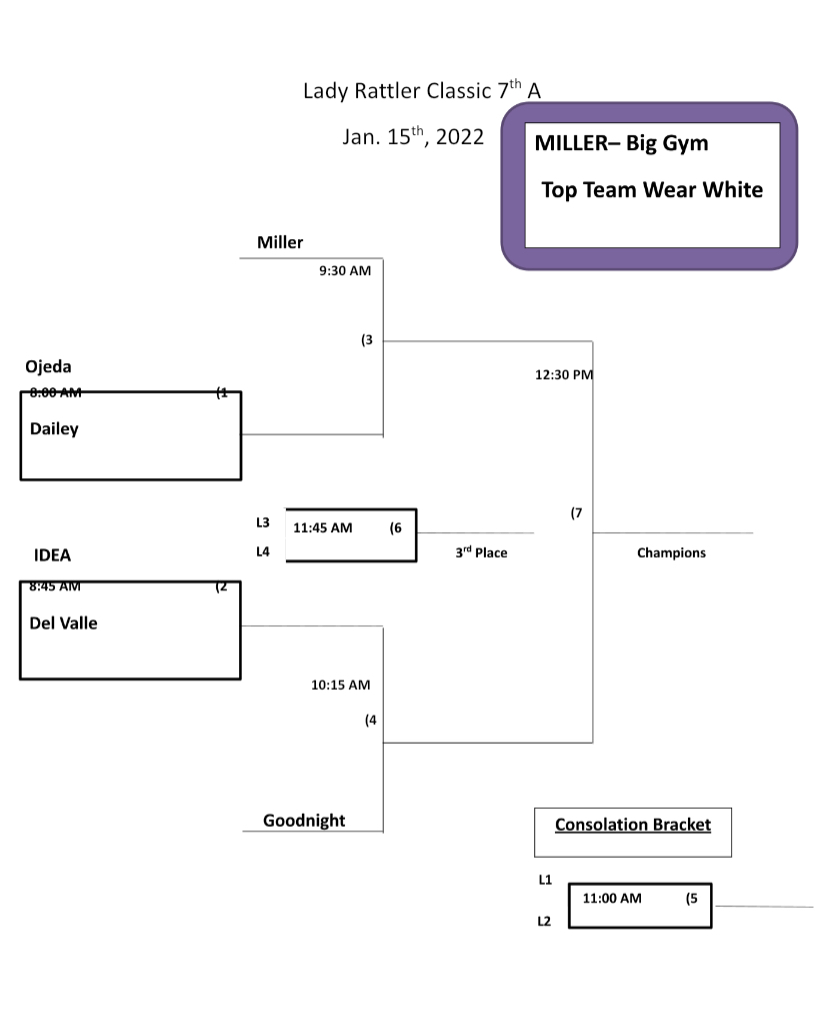 All spectators will be asked to wear a mask in all SMCISD facilities. Join us for the Lady Rattler Classic Basketball Tournament on January 15, 2022. The 7G Lady Rattlers will be hosting area schools for tournament play at Miller. Let’s go Lady Rattlers!