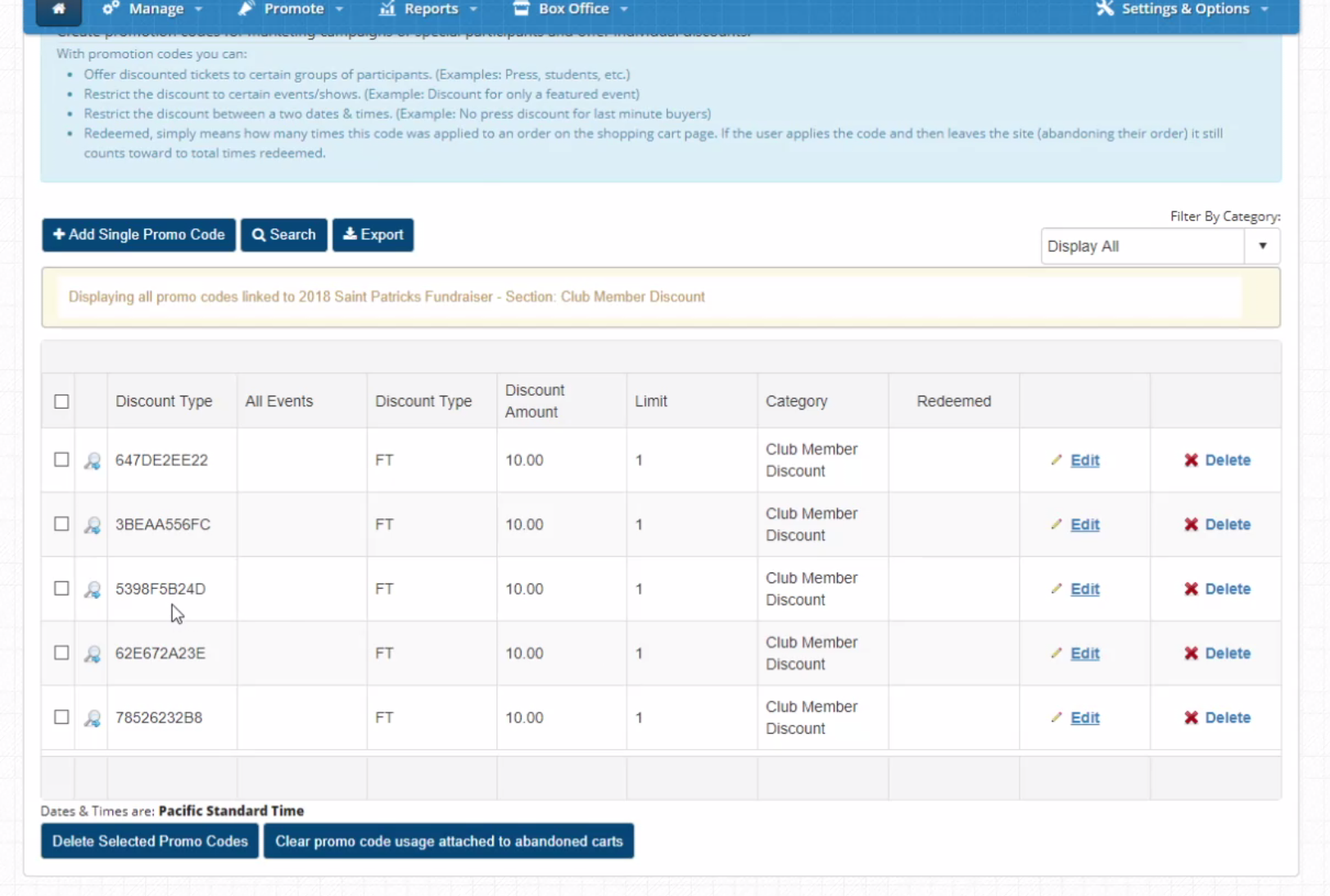 Once the codes are generated, they can be distributed to members and applied on the site just like any other promotional code. Codes can be set to used only one or multiple times and can be applied for any amount off of the regular ticket price.