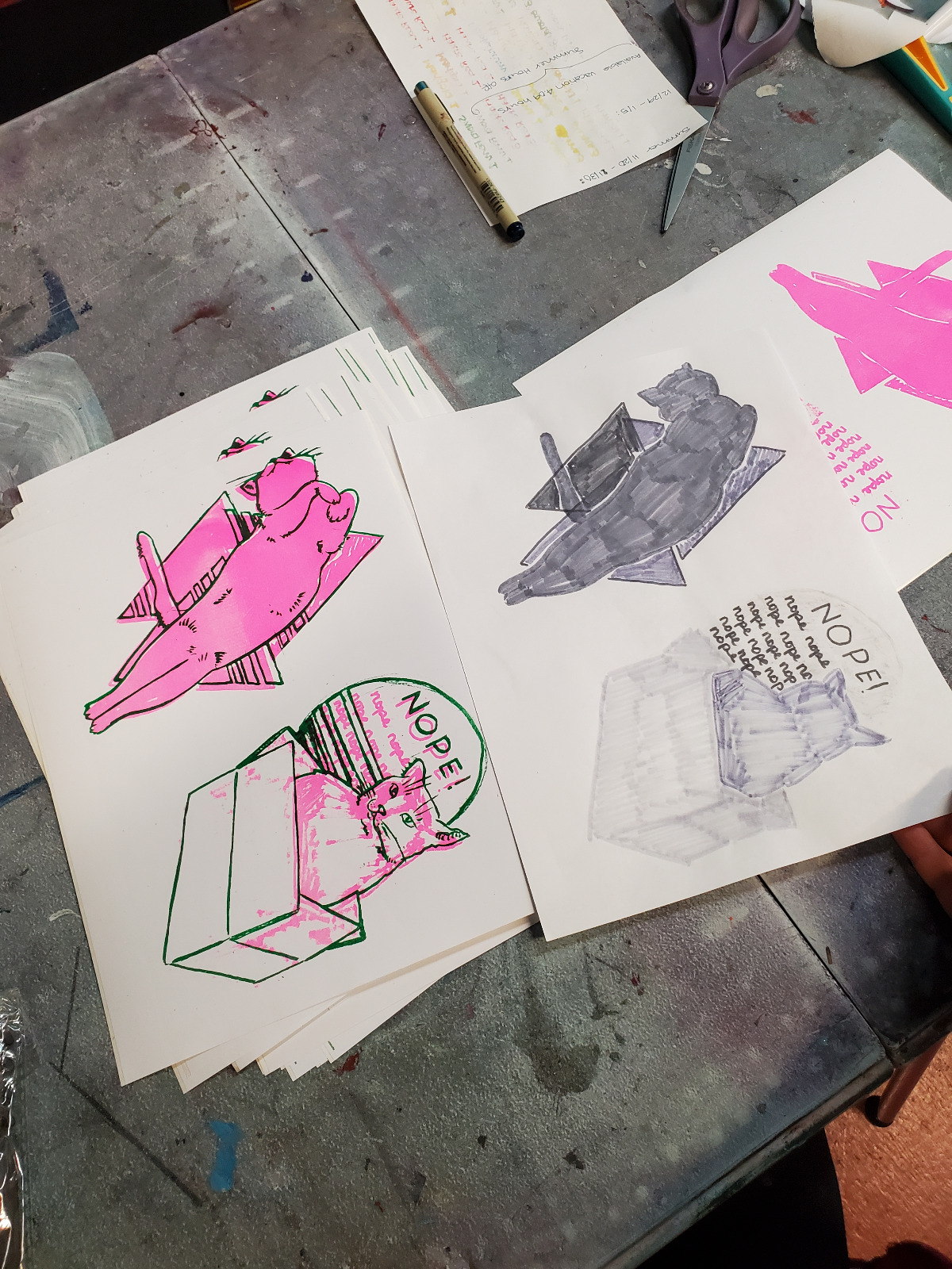 Designs will be 8.5" x 11" and you'll get guidance from Push/Pull's Riso wranglers.