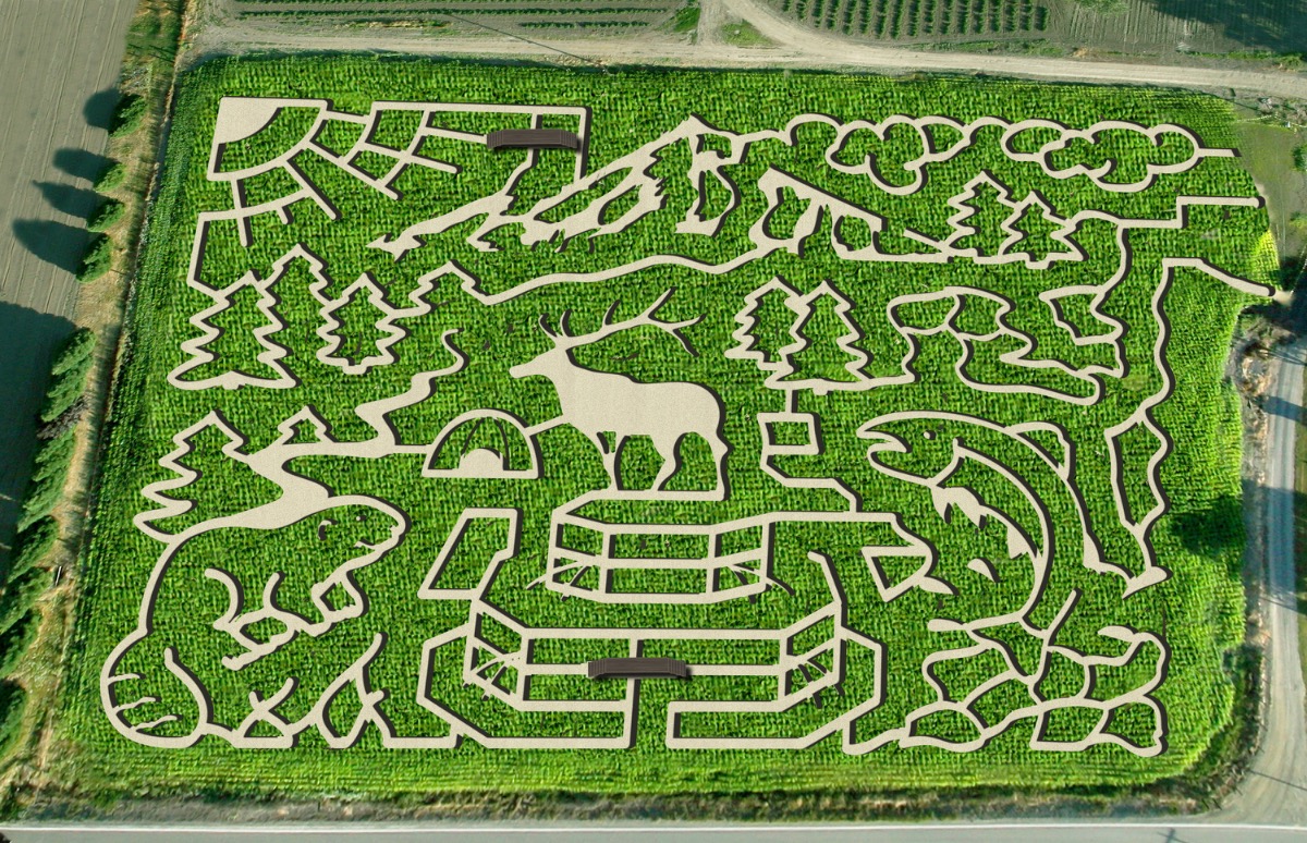 The MAiZE at The Pumpkin Patch, the premier destination for family-friendly entertainment and fall harvest bounty on Sauvie Island, is thrilled to announce the celebration of our “Cornlandia” themed corn maze. This year’s Maize theme is a tribute to a wild harvest where nature, nostalgia, and northwest pride grow tall. For a quarter of a century, The MAiZE at The Pumpkin Patch has provided cherished memories and exhilarating adventures for visitors from near and far. We invite everyone to join us for a special season of festivities and fun, paying tribute to the land where elk roam, beavers build, salmon run, and Mount Hood watches over it all. This year’s Maize is a love letter to Portland’s untamed heart- celebrating the animals, land and spirit that make our corner of the world wildly special.