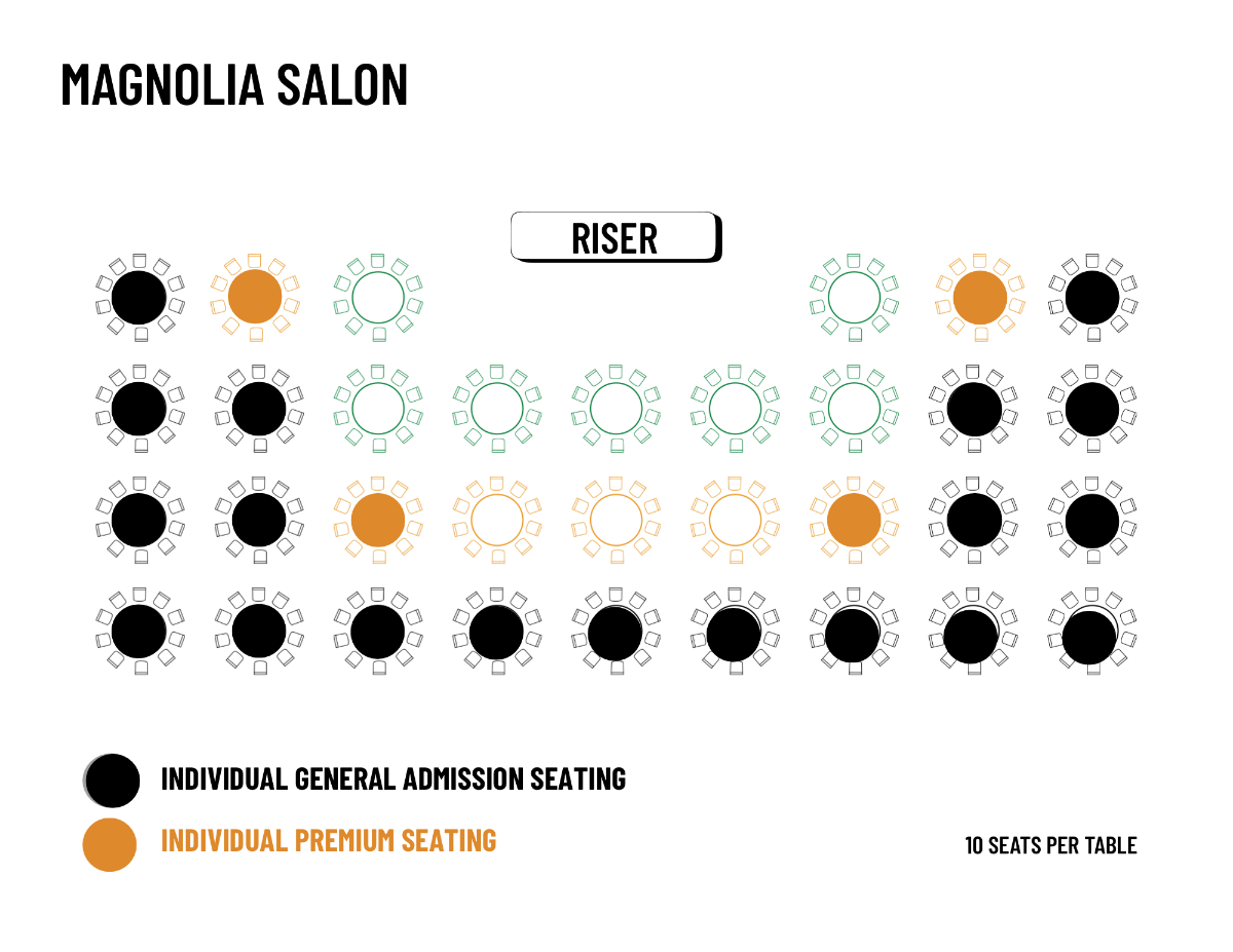 PLEASE NOTE: There will be an opportunity to suggest table mates when purchasing tickets. We will try our best to comply with your request with this same ticket holder. FULL TABLE RESERVATIONS ARE AVAILABLE