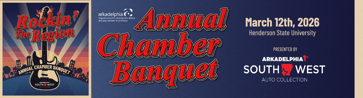 It’s time to turn up the volume on Clark County! Join the Arkadelphia Alliance and Area Chamber for a high-voltage night celebrating the businesses and leaders driving Clark County forward. We are thrilled to invite you to our 2026 Annual Banquet: Rockin' The Region, presented by Southwest Auto Collection. This signature event will take place on March 12th, 2026 at Henderson State University.