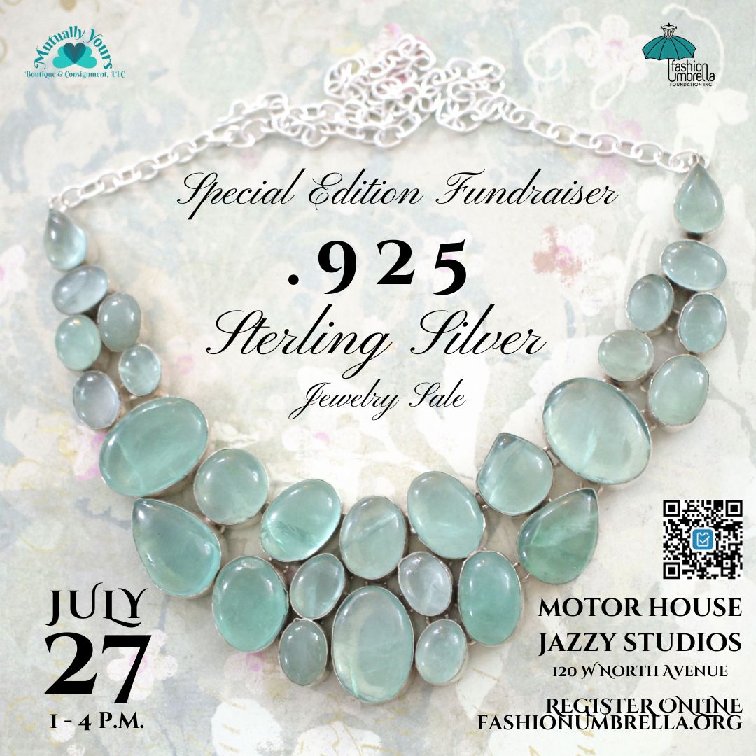 Join us for the exclusive ".925 Sterling Silver Jewelry Sale," a premier event featuring an exquisite collection of sterling silver jewelry, presented by Mutually Yours Boutique & Consignment, LLC from Delaware. This special sale not only offers you the chance to adorn yourself with finely crafted sterling silver pieces but also supports an admirable cause. All proceeds from this event will contribute to the Fashion Umbrella Foundation Scholarship Award, specifically aimed at assisting college students in their Freshman or Sophomore years.