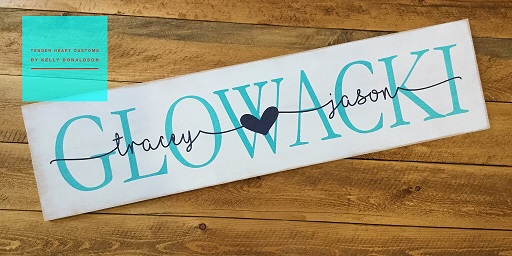 Need a valentine's gift, or just want to show off your love...we have the project for you! Join us for an evening of fun where you will paint your own 6"x24" sign. Signs are distressed wood with white background paint. Personalize your family name and sweetheart names in our color options! We will stencil both names and paint them together. Signs include hanging hardware. Ticket includes one sign experience. Tickets are non-refundable. Please contact Kelly Donaldson with any questions at (412) 526-3627 or tenderheartcustoms@gmail.com. Like our facebook page for more events and updates at www.fb.com/tenderheartcustoms