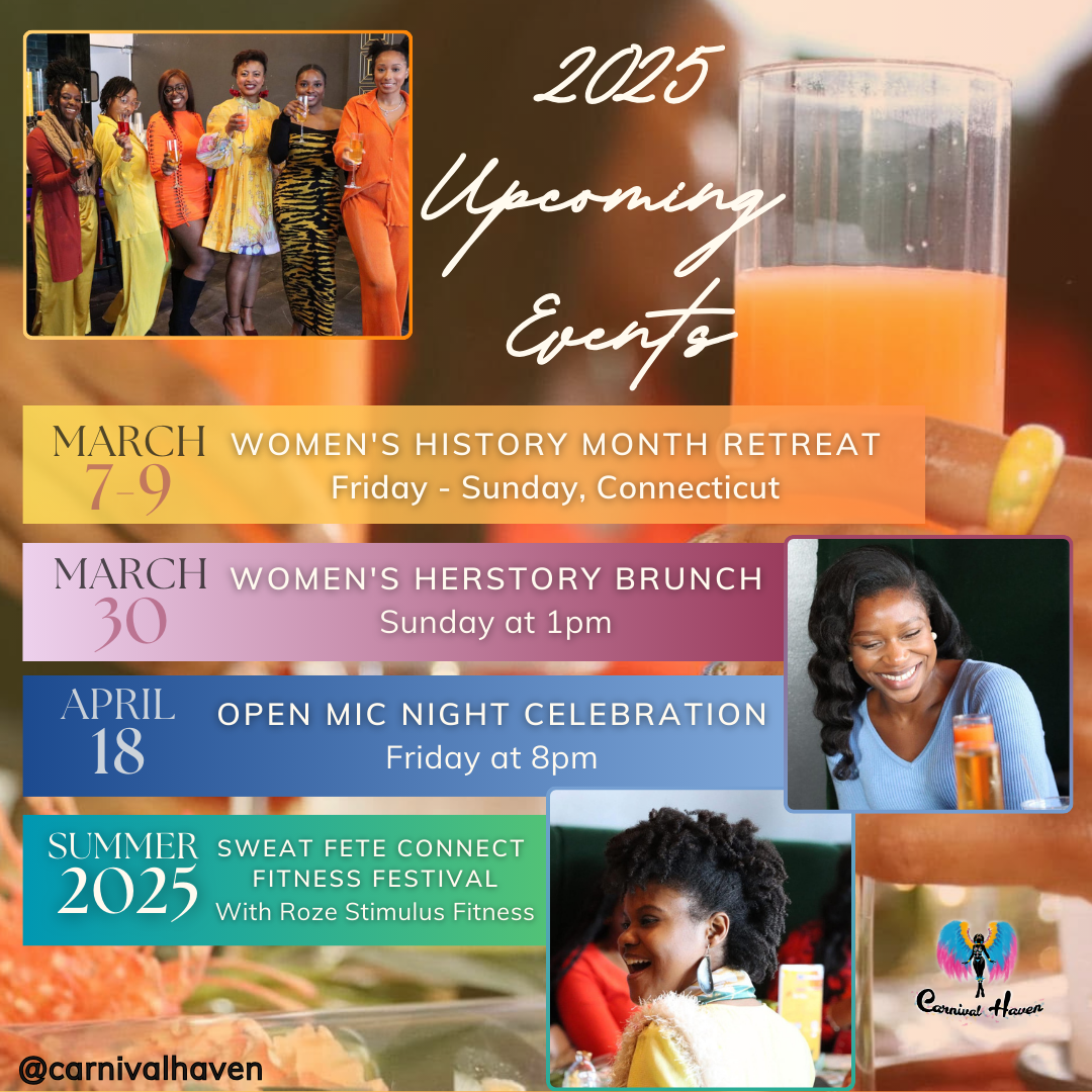Join us at the newly opened Brosha House in Brooklyn, New York for Carnival Haven's Women's HerStory Brunch! Each year, we aim to uplift and celebrate the stories, accomplishments , and ventures of women making moves in various industries. We especially shine a light on the women of Caribbean and African descent, who make up our Carnival Haven community and network, to elevate their voices in a society where we are constantly underrepresented. Come connect with us through food and music, and enjoy performances, raffles, and more!