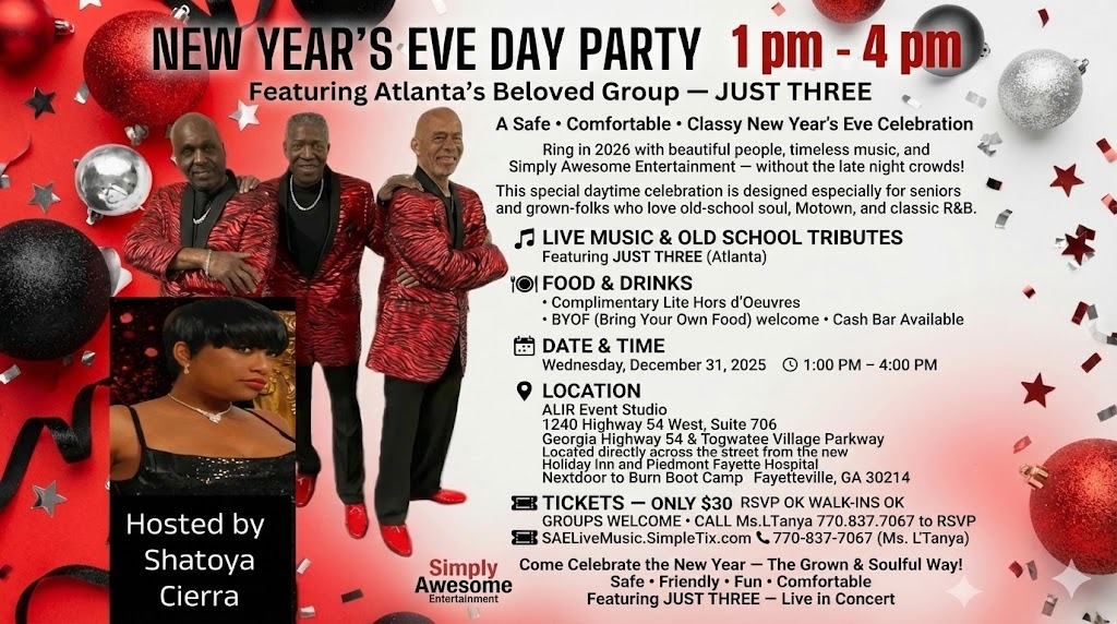 Ring in 2026 the Simply Awesome way with a full-day, full-night grown-folks celebration filled with live music, dancing, great food, and unforgettable vibes — all without the $150+ ticket price!