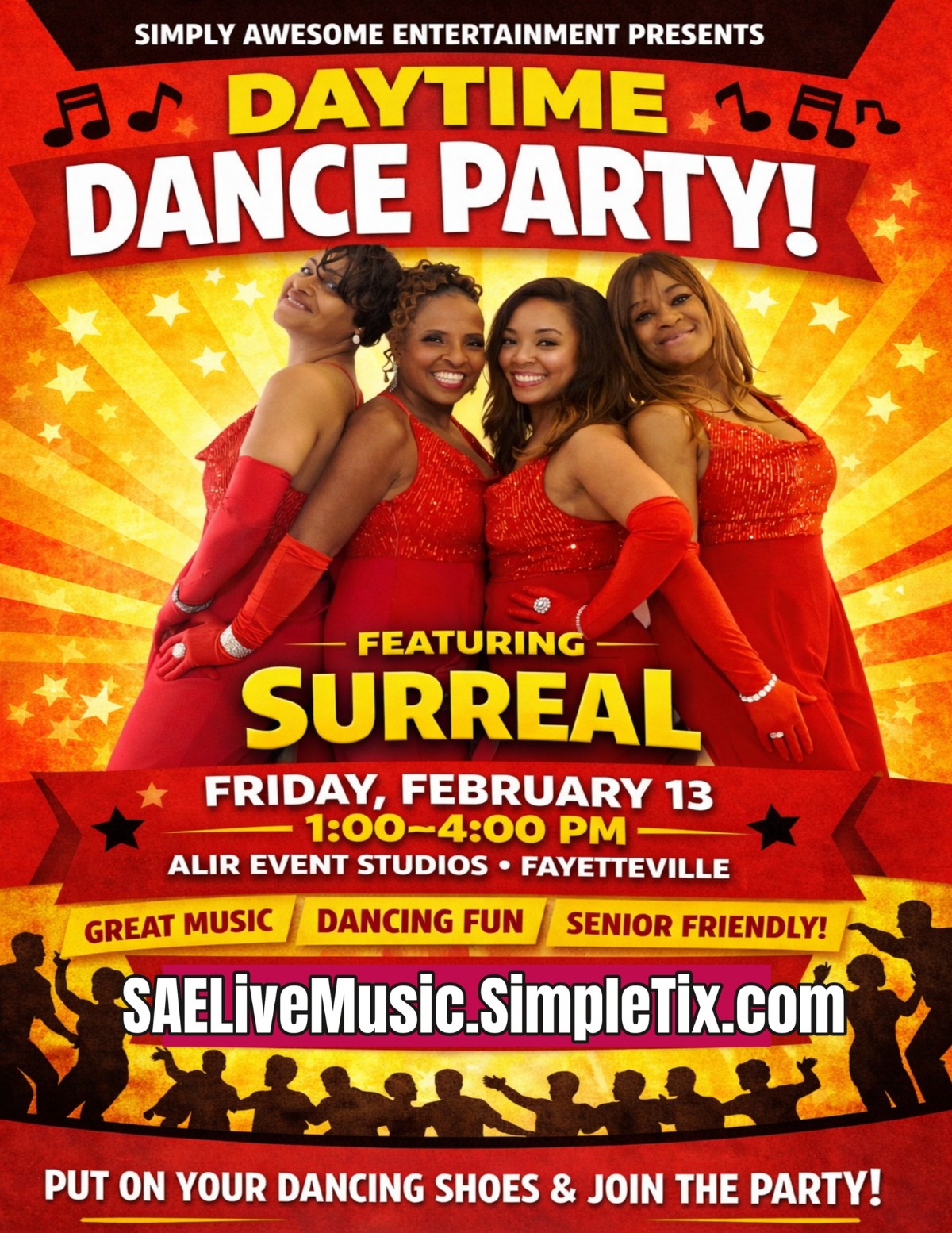 Join us for a Senior-Friendly Day Dance Party featuring the all-girl powerhouse group Surreal bringing the grooves, the classics, and the kind of music that makes you move without even thinking about it.