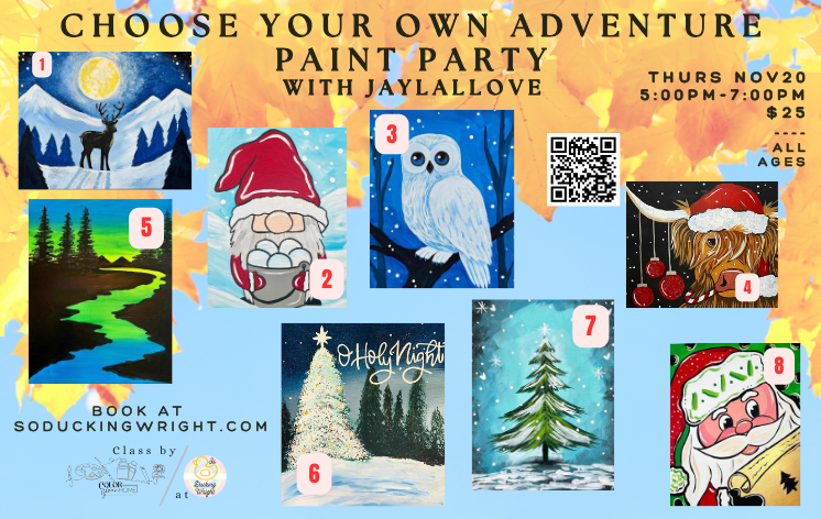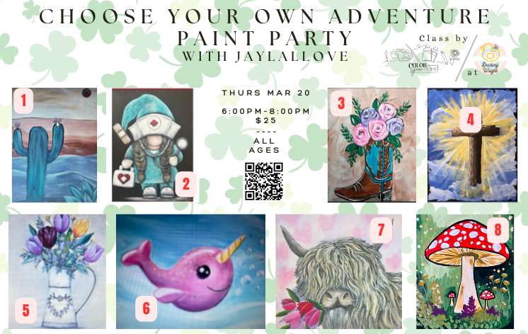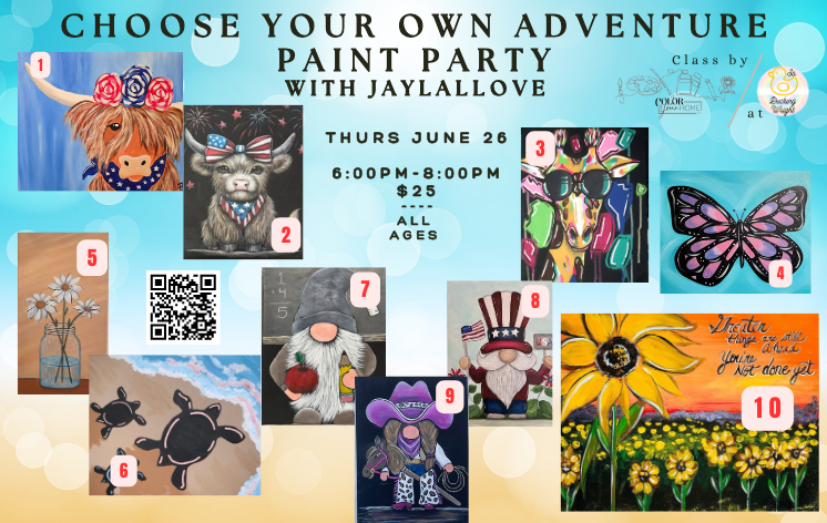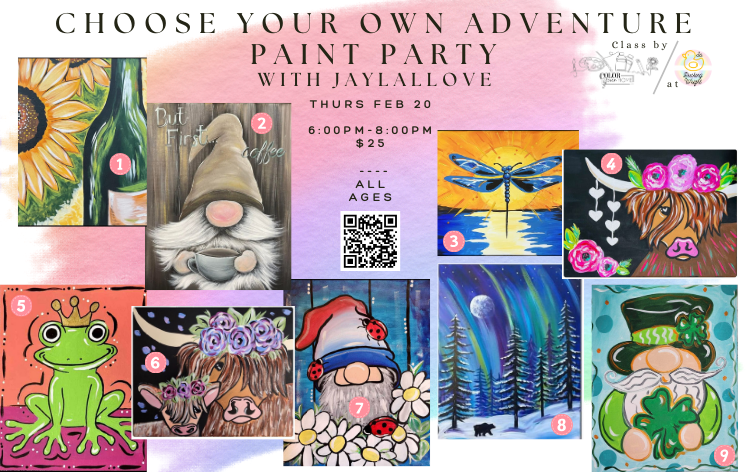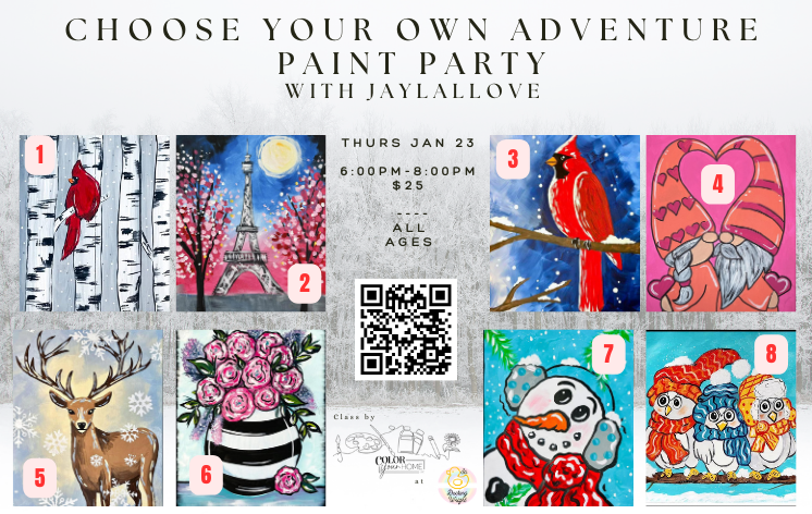 Remember those amazing Choose Your Own Adventure books? Jaylallove is bringing it to you in painting form! And this month, we're having a Super Adventure!! If you missed a painting you really wanted to do, it's not too late! This month, you can choose from ANY of the paintings we've offered this year (and if you ask nicely, you can probably select from last year's paintings as well! 😉)