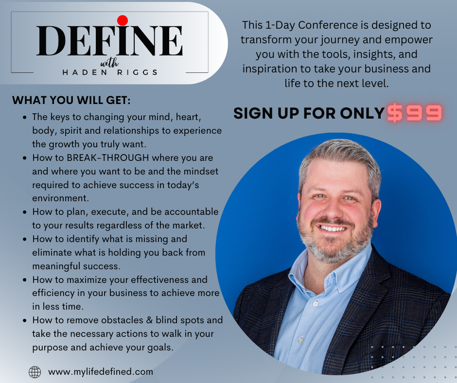 This 1-Day Conference is designed to transform your journey and empower you with the tools, insights, and inspiration to take your business and life to the next level. You will learn how to DEFINE your WHY, your FAITH, and your FINISH by aligning your true purpose and discovering untapped potential.