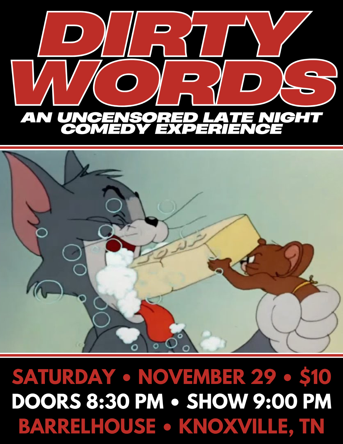 That's right- Knoxville's hit, uncensored late night comedy show is back at Barrelhouse! On November 29th, Dirty Words returns with a banger of a lineup you can't miss! This show features comedians you might recognize from Don't Tell Comedy, Kill Tony, Zanies Nashville, Laughing Skull Lounge, Comedy Central, and more performing their darkest and dirtiest material for a late night crowd- this is not for the faint of heart! If you're a fan of edgy, off-the-walls comedy, this is the show for you! Grab your tickets today and don't sleep on an absolutely insane night of boundary pushing humor!