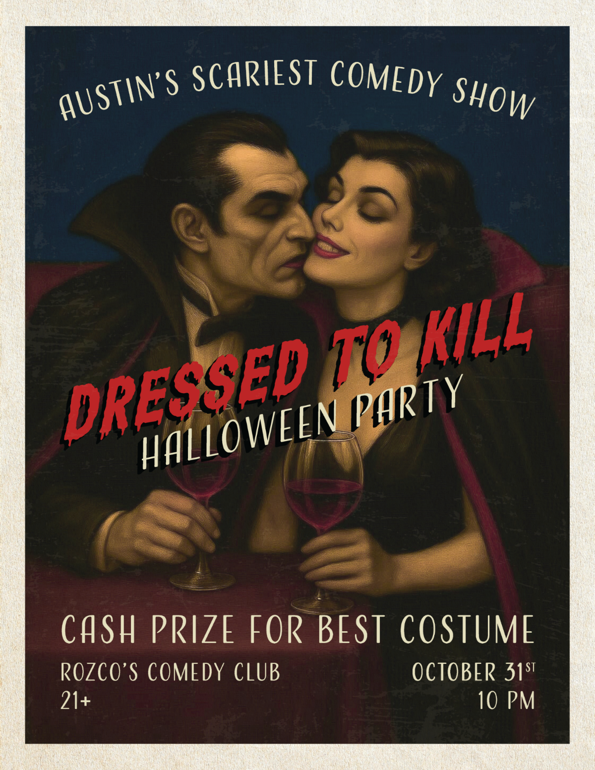Get ready for a ghoul's night out this Halloween! It's time to trade in those suits and dresses for some wickedly hilarious fun. Join us for a night of devilish laughter with our lineup of hilarious comedians, all decked out in their scariest costumes and ready to deliver punchlines that'll send shivers down your spine. Don't wait too long to grab your tickets—this is one Halloween bash you don't want to miss!