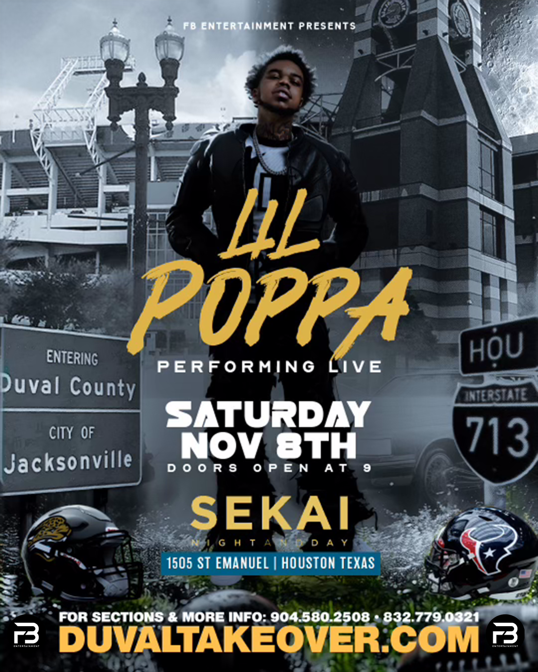 Jacksonville’s own Lil Poppa is bringing that Duval energy to H-Town for one unforgettable night! Come experience the takeover with top DJs, high energy, and the livest crowd in Houston.