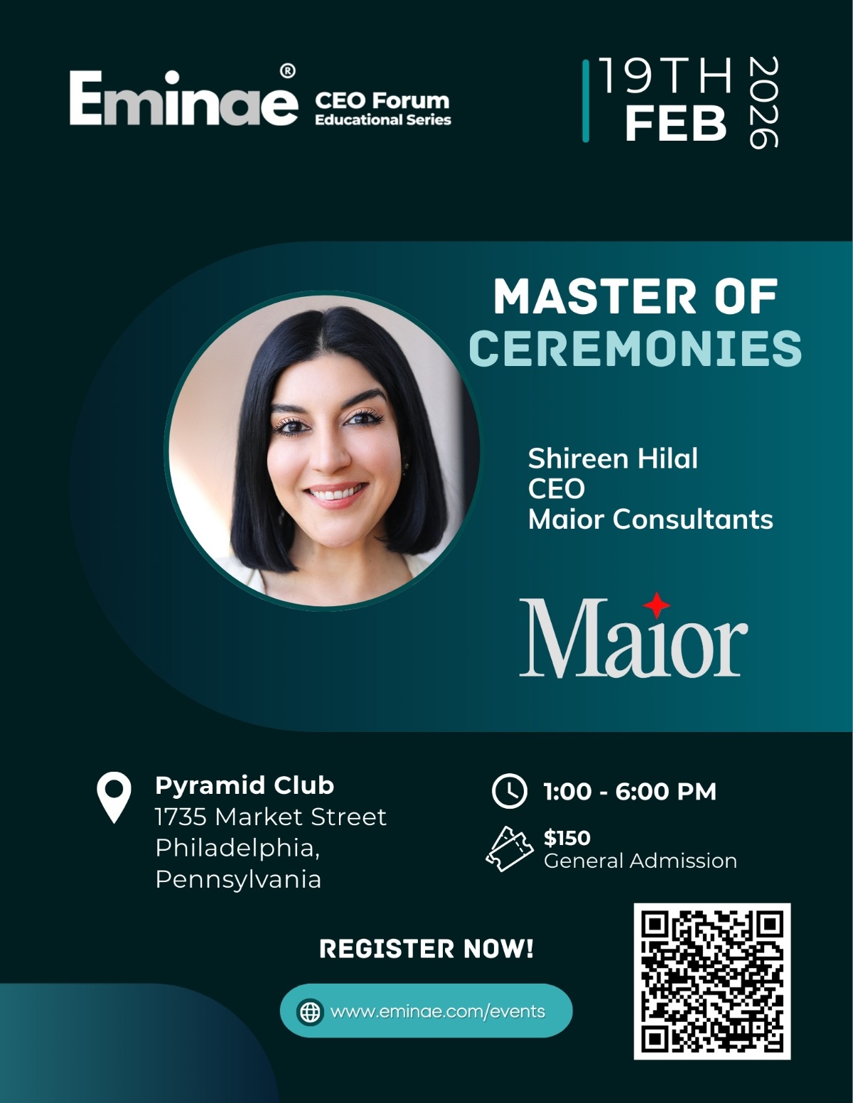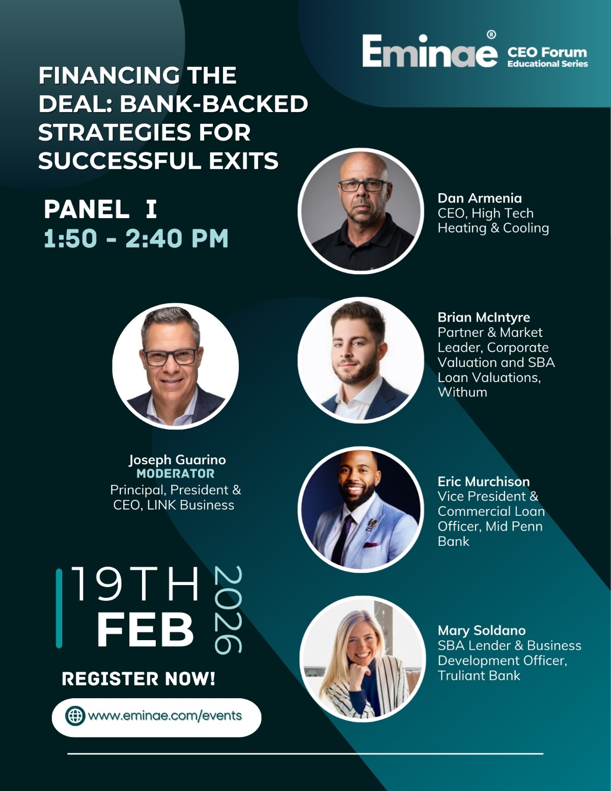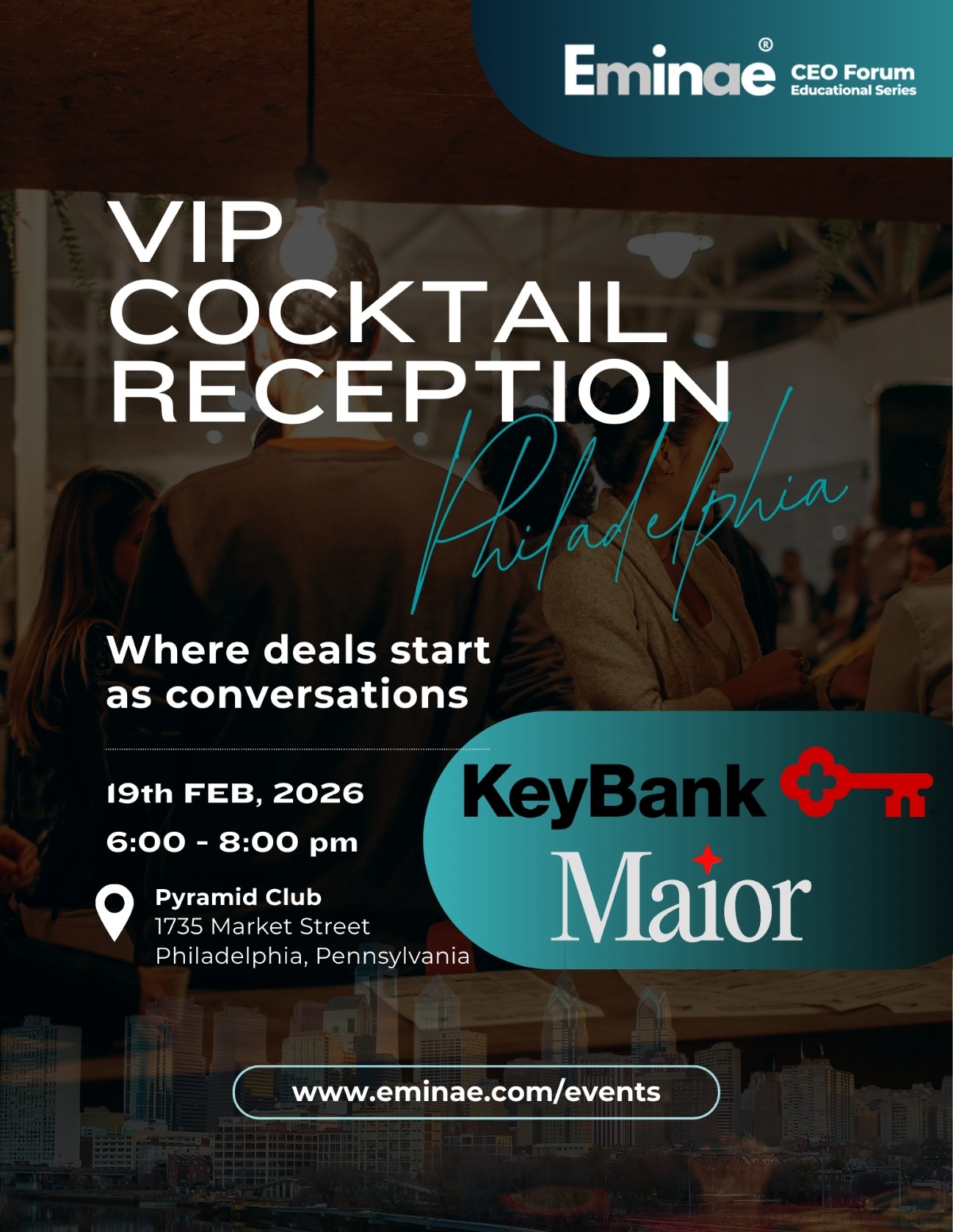 Eminae CEO Forum: Navigating Today’s M&A Landscape Thursday, February 19 | 1:00 PM – 6:00 PM Pyramid Club | 1735 Market St, 52nd Floor, Philadelphia, PA 19103