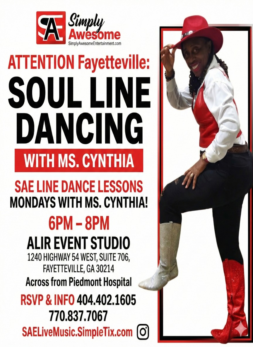 Fayetteville Line Dance Lessons Mondays w Ms. Cynthia 6pm-8pm Please pay in person to Ms. Cynthia