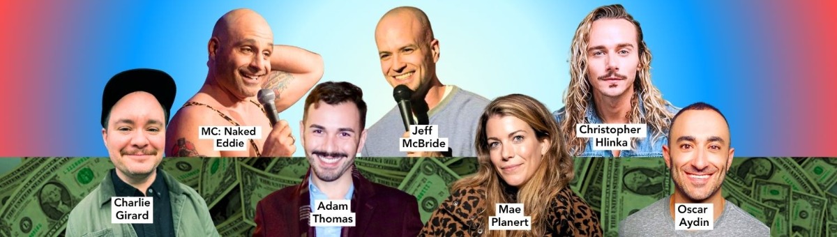 Lineup: MC Naked Eddie (Winner of Eyes Up Here Comedy Festival), Jeff McBride (Don't Tell Comedy NJ), Christopher Hlinka (The Awesome 80’s Prom), Adam Thomas (CBS), Charlie Girard (NY Queer Comedy Fest), Mae Planert (Doomscroll Diaries Podcast), Oscar Aydin (Sit’N B!tch Podcast)