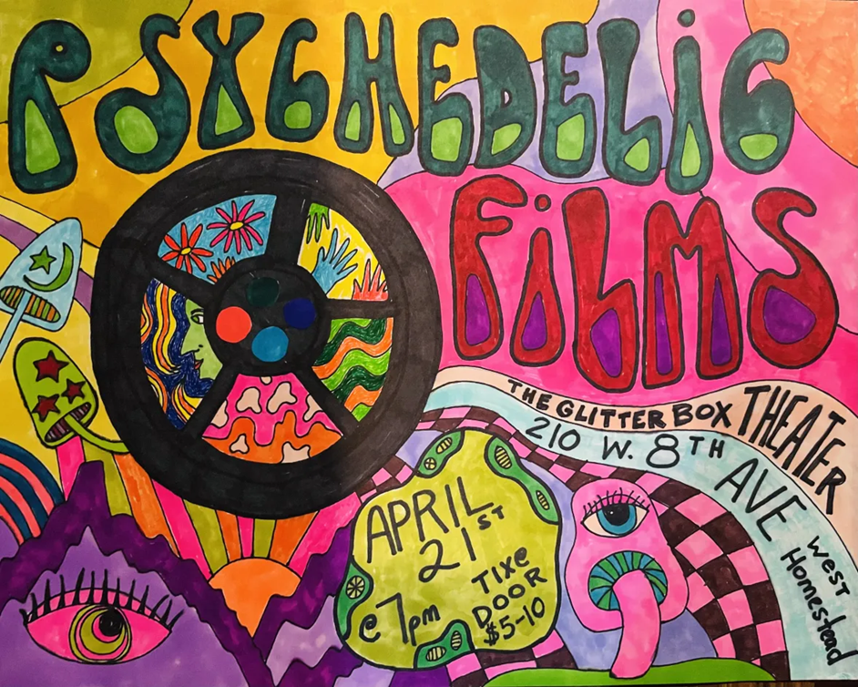 Join The Glitterbox Theater for the 4th annual Psychedelic Films: An evening of strange, far out, trippy, mind boggling and visually dazzling 16mm films projected by Flea Market Films, curating a fascinating array of surreal 16mm films – Spectrum Specs and Chromodepth Glasses highly recommended!
