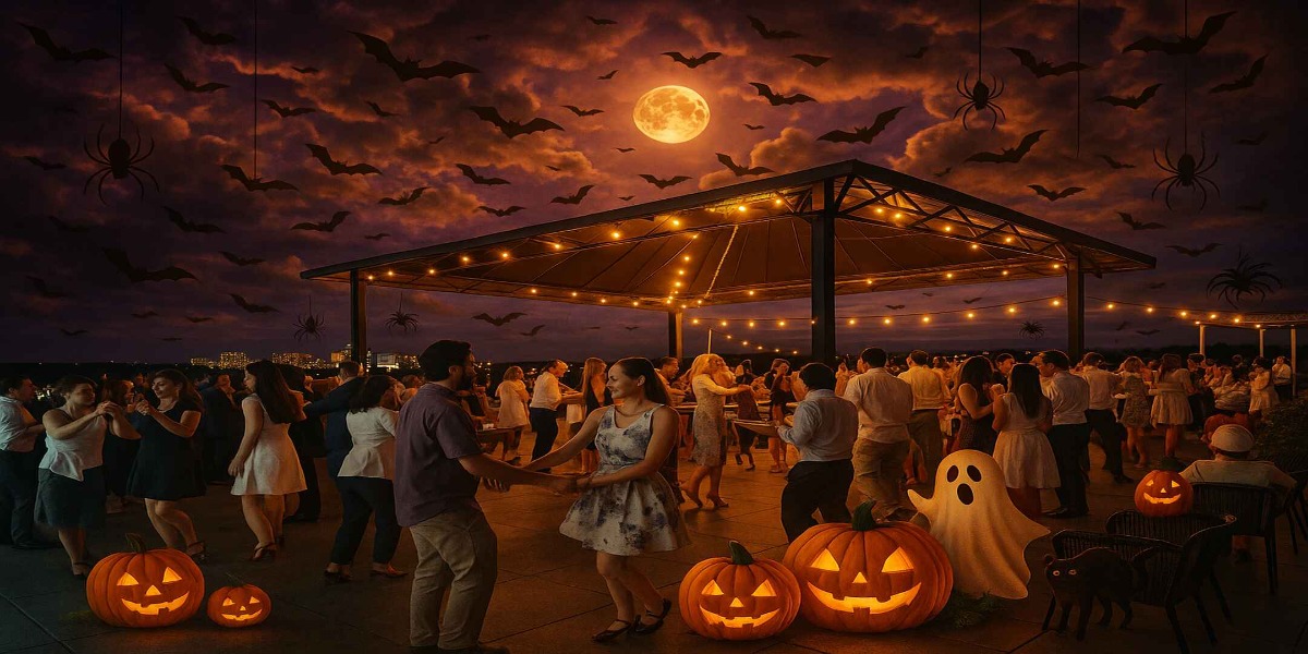 Join Inspira and the International Club of DC to meet over 200 other dancers and celebrate Halloween with an Embassy Row Rooftop Dance Soiree under the stars featuring TWO live bands performing both swing and salsa music. The evening begins with swing and salsa dance lessons followed by a haunted battle of the bands as a swing and salsa band takes the stage to perform music for an unforgettable Halloween Soiree under the stars with spectacular views of the Washington DC skyline as a backdrop.