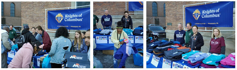 At the recent BOOT UP PHILLY! Event on October 22nd (sponsored by St. John’s Hospice/Catholic Social Services), our KofC Council 1191 distributed more than 750 articles of kids’ clothing including: 72 new hooded winter coats, 96 knit caps, 120 pairs of gloves, and 200 pairs of socks. In addition, more than 250 gently-used, donated items were shared including: kids boots/footwear, scarves, sweaters, and mittens.