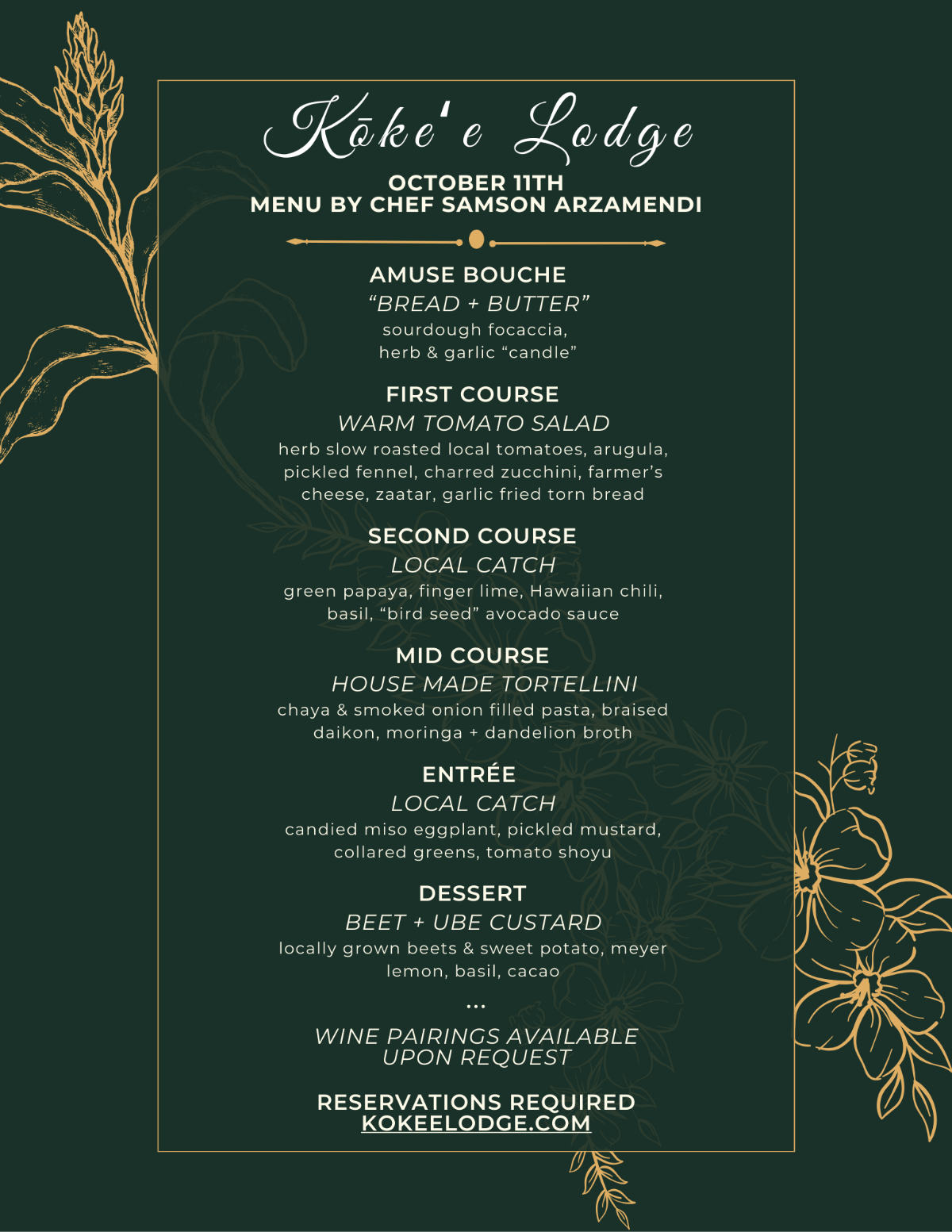 The Kōkeʻe Lodge executive Chef Samson Arzamendi curates a menu monthly