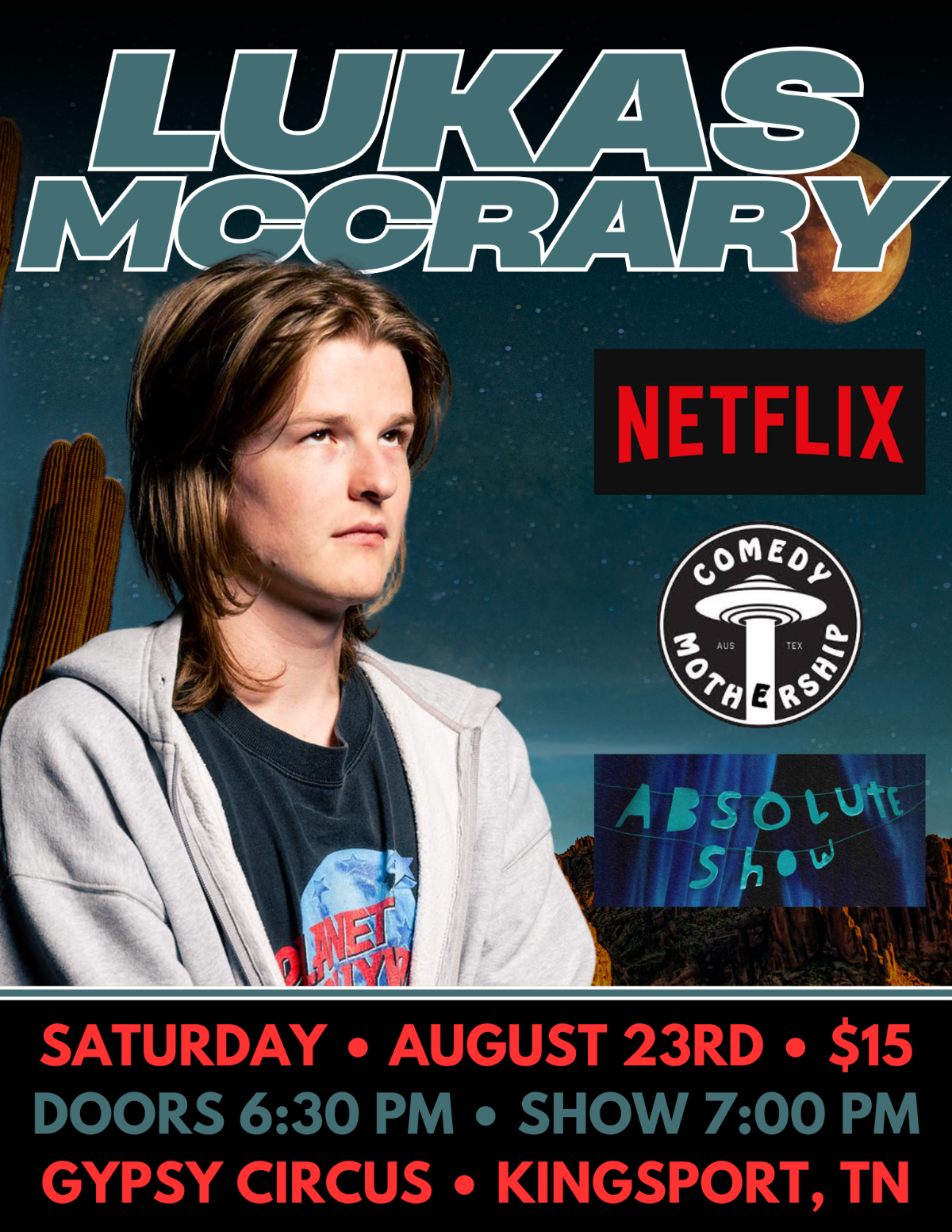 Originally from East Tennessee, Lukas is an Austin, TX-based comedian. His stand-up was featured on Netflix's 20 Somethings, and he has performed at SXSW and Skankfest. On Instagram and TikTok, his comedy has been seen over 7 million times. He has worked with numerous headliners including Tim Dillon, Maria Bamford, and Brian Simpson. In Austin, Lukas successfully auditioned to be in the first class of comedians at Joe Rogan's club, the Comedy Mothership. You can see Lukas on his hit show Absolute Show at the Creek & The Cave every week on YouTube.