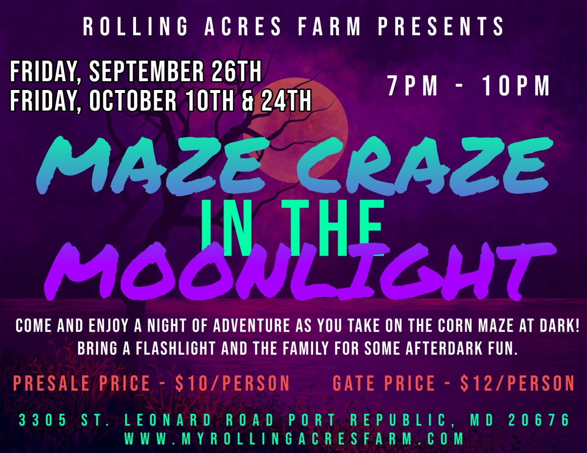 Come and enjoy a night of adventure as you take on the Corn Maze at DARK! Bring a flashlight and the family for some after dark fun. All farm activities remain open. Please keep in mind this is a family-friendly event. All children should be accompanied by an adult.