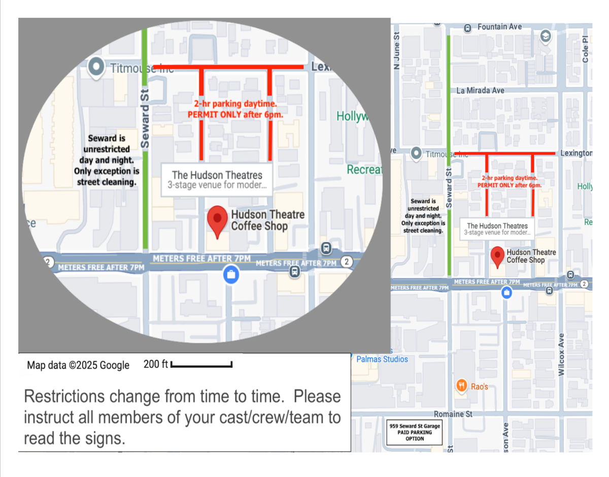 A: There is a valet service for shows. Cars pay $15. Valet starts about an hour before showtime. Prior to that, the parking lot is assigned spaces only. Please read all signs when street parking. There’s street sweeping on many of the streets on Mondays and Tuesdays from 10am-1pm, which cuts down on available street parking. Please refer to the map below for parking.