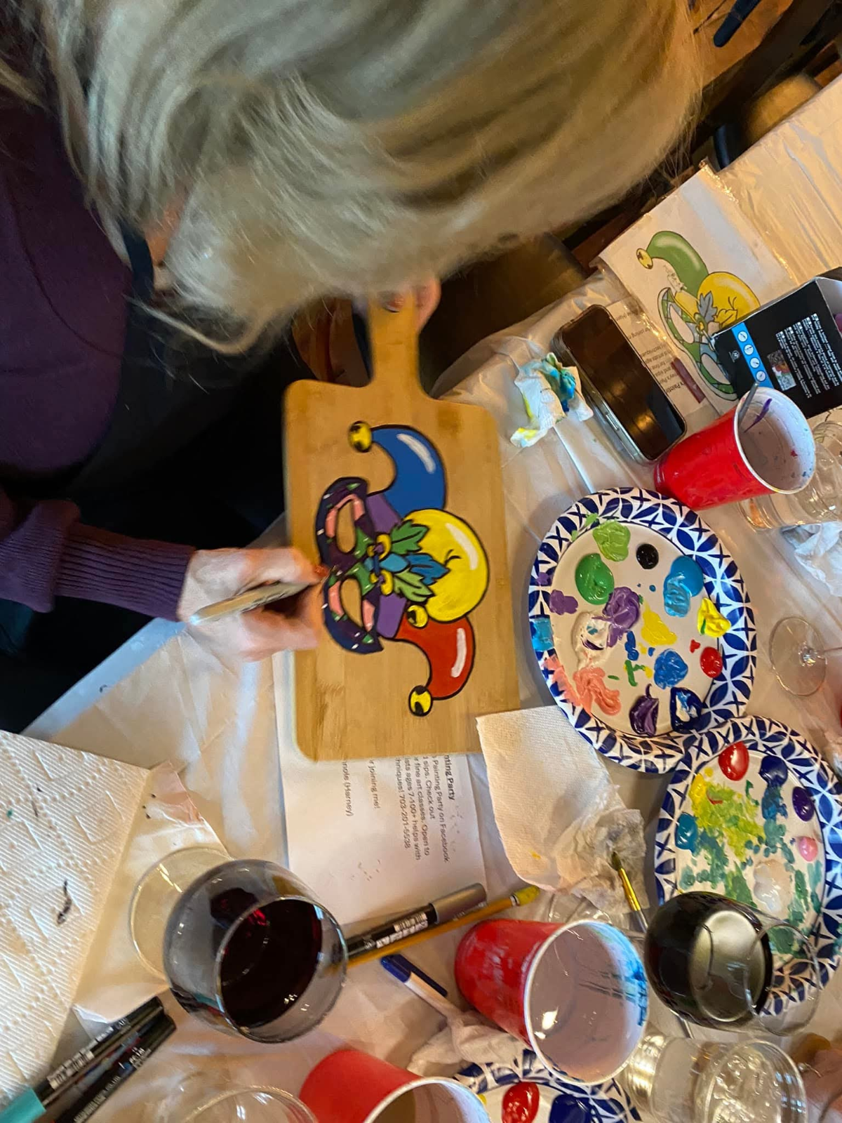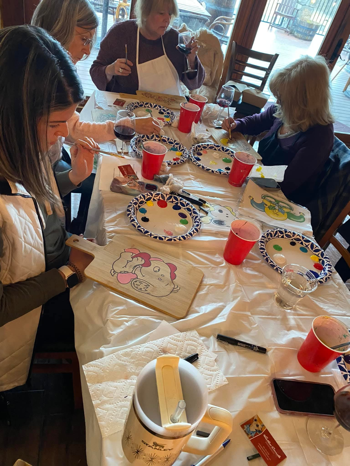 - A charcuterie board that you’ll be painting – mulitple designs available — and taking home! You can later polyurethane this for it to be food safe.