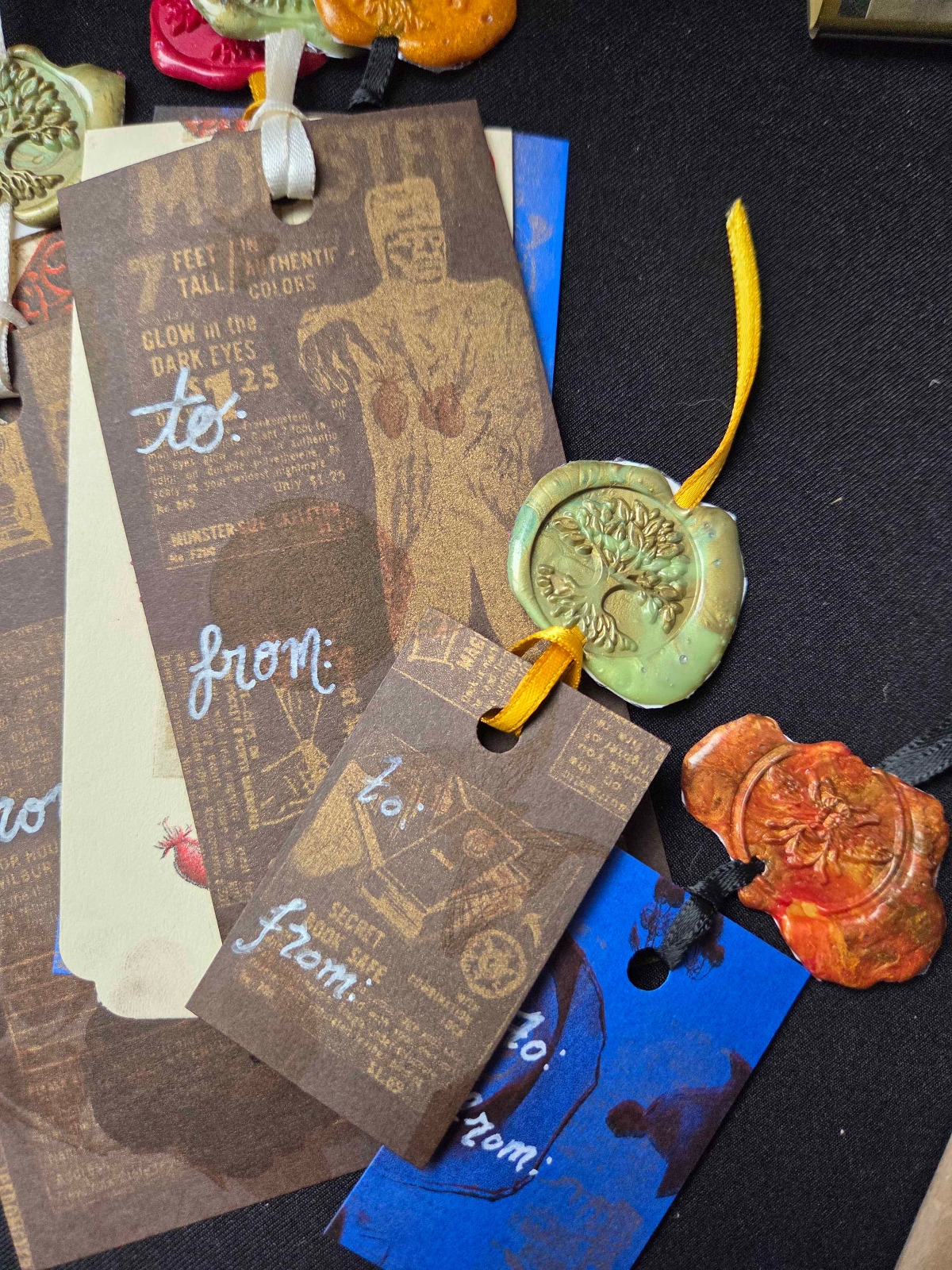 (These examples were made into gift tags, but they're pretty similar to bookmarks in the end!)