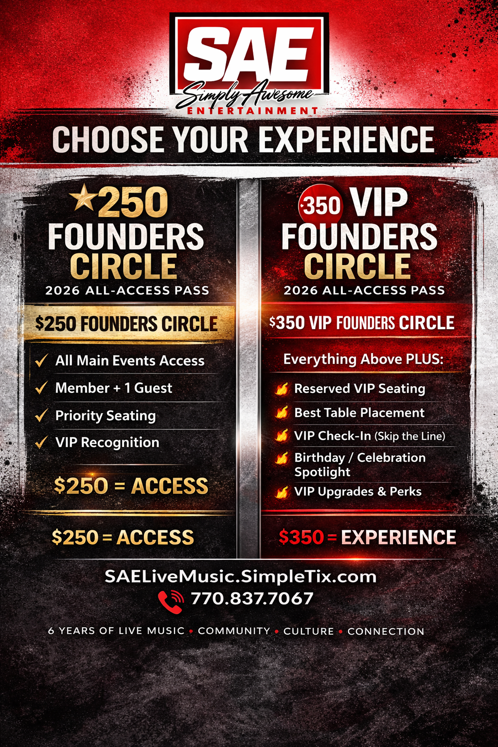 Simply Awesome Entertainment (SAE) invites you to become part of our Founders Circle β a special membership designed for those who love live music, community, and being in the room where it all happens.