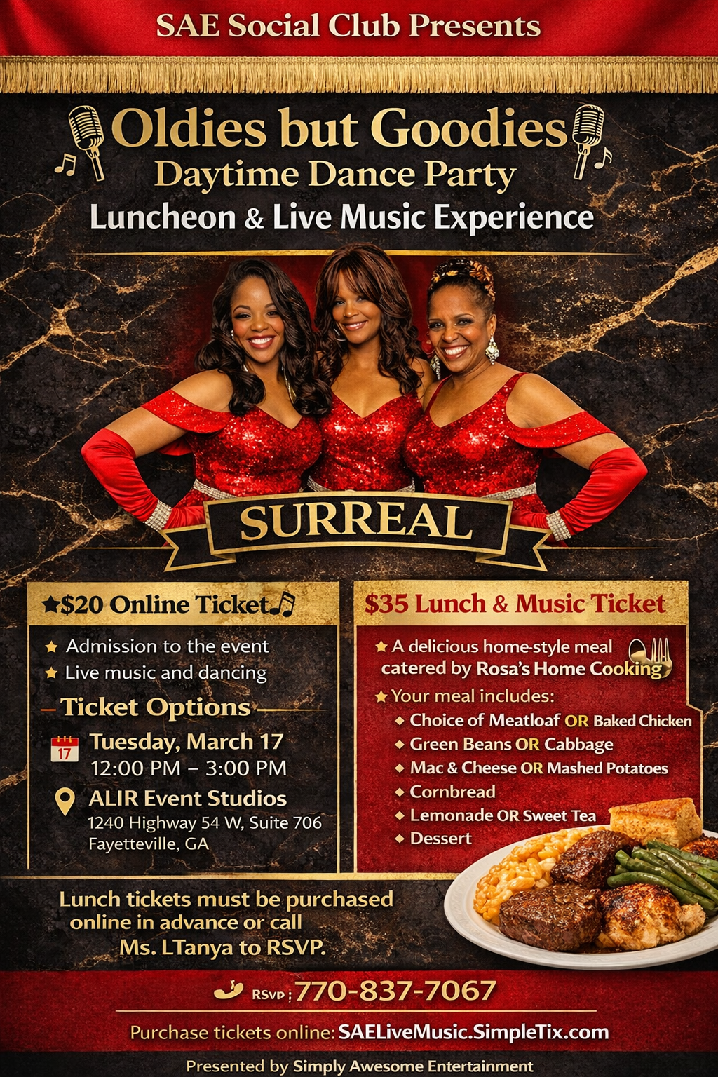 β οΈ Lunch tickets must be purchased online in advance or call Ms. LTanya to RSVP.