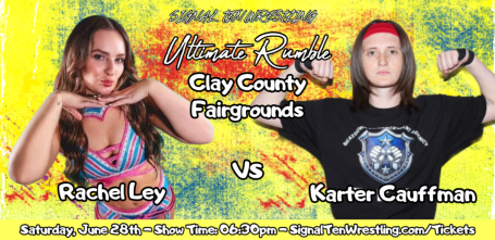 Signal Ten Wrestling's Ultimate Rumble returns to the Clay County Fairgrounds for the second annual rumble show on Saturday, June 28th! This event features a 20-man rumble match to declare the No. 1 contender for the Heavyweight Championship.