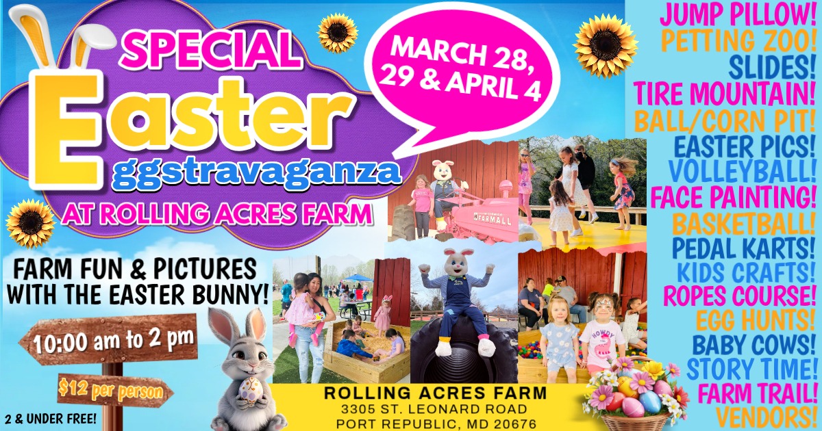 Hop on over to Rolling Acres Farm for a fun-filled Easter celebration the whole family will love! Join us for farm fun, egg hunts, adorable Easter Bunny pictures, and so much more!