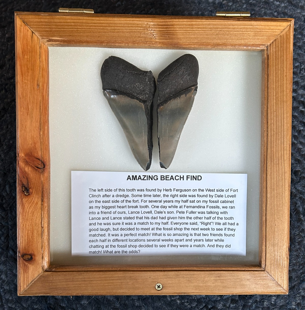 While the odds may be low that matches will be made, it has happened before! Come into the fossil center to see the famous heart-broken meg which started all of this! One half was found by Herb Ferguson, and the other half was found by another person several miles away. These two halves were reunited several years later.