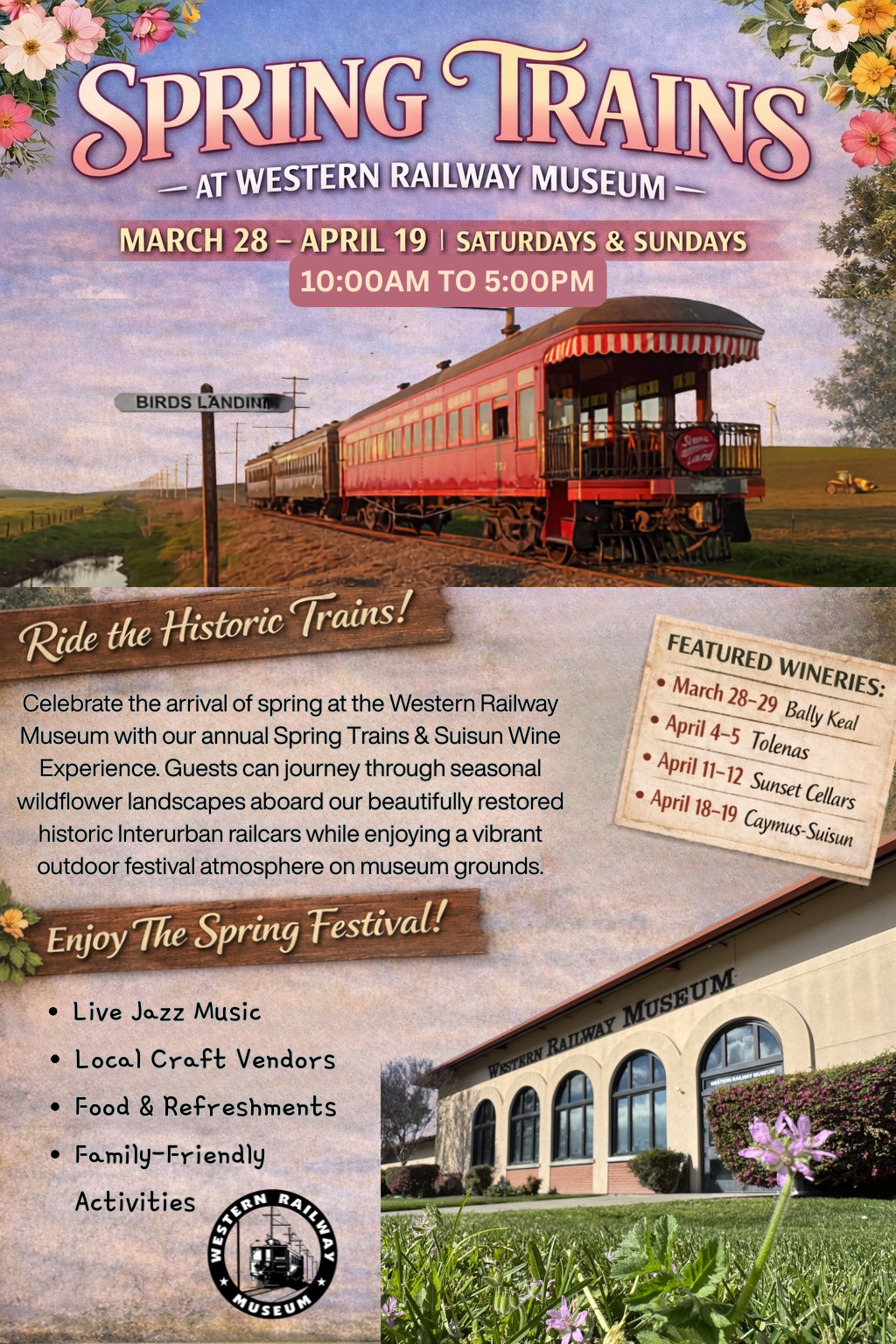 The mission of the Western Railway Museum is to preserve the regional heritage of electric railway transportation as a living resource for the benefit of present and future generations. Our Museum offers Interurban Train Rides, Special Events, Tours, and more throughout the year. Take a step back into history and visit us on the rails!