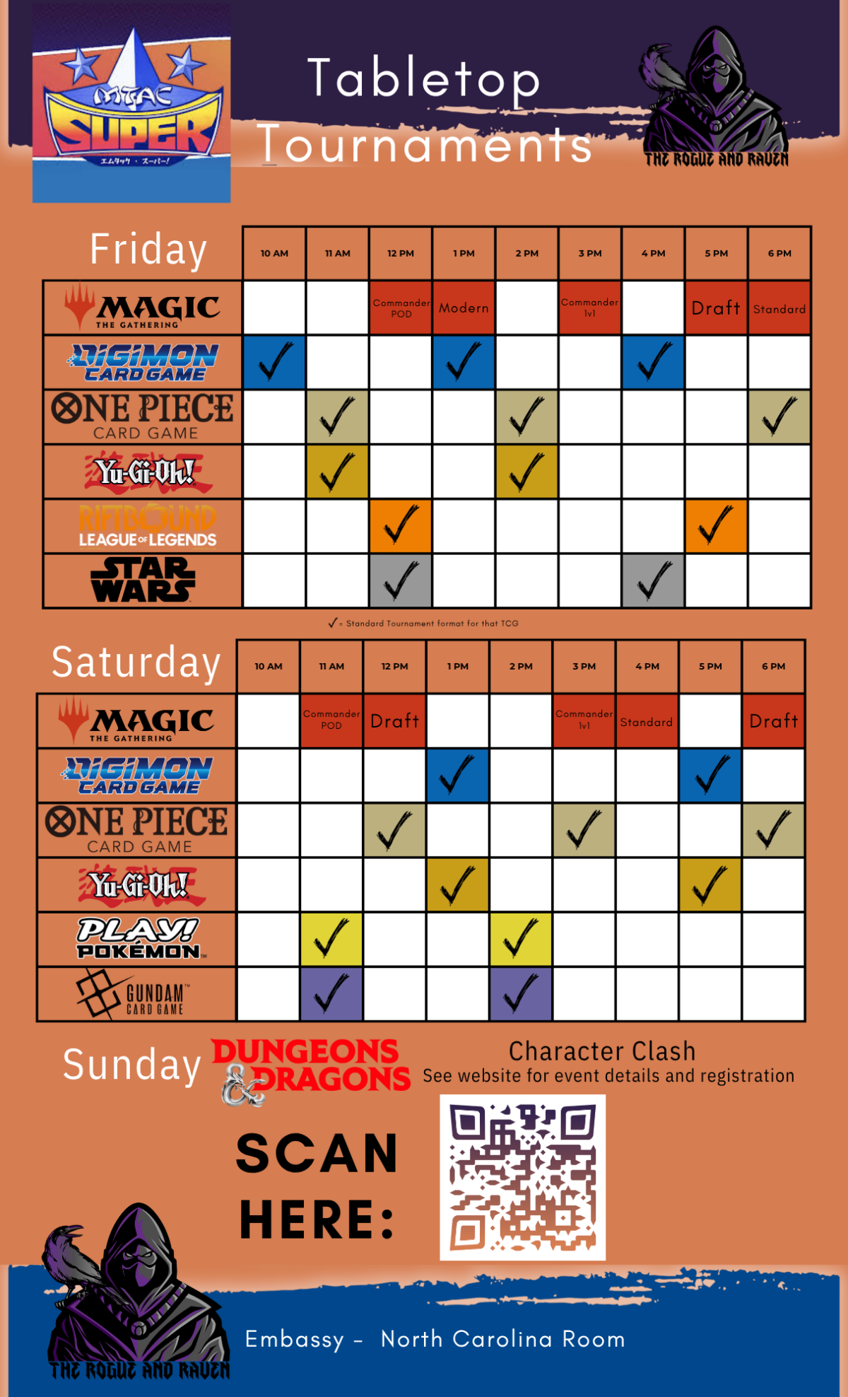 Shuffle up your decks and get ready for battle! The Rogue and Raven (TRAR) is hosting a series of Trading Card Game (TCG) tournaments at MTAC Super 2026. Whether you're a master strategist or just starting your collection, this is your chance to prove your skills and connect with the TCG community.