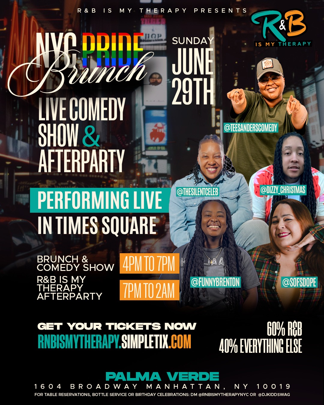 AND WE'RE NOT DONE YET......IMMEDIATELY FOLLOWING THE BRUNCH & COMEDY SHOW, @RNBISMYTHERAPYNYC IS BRINGING YOU THE DOPEST R&B PARTY NYC HAS EVER SEEN!!!!
