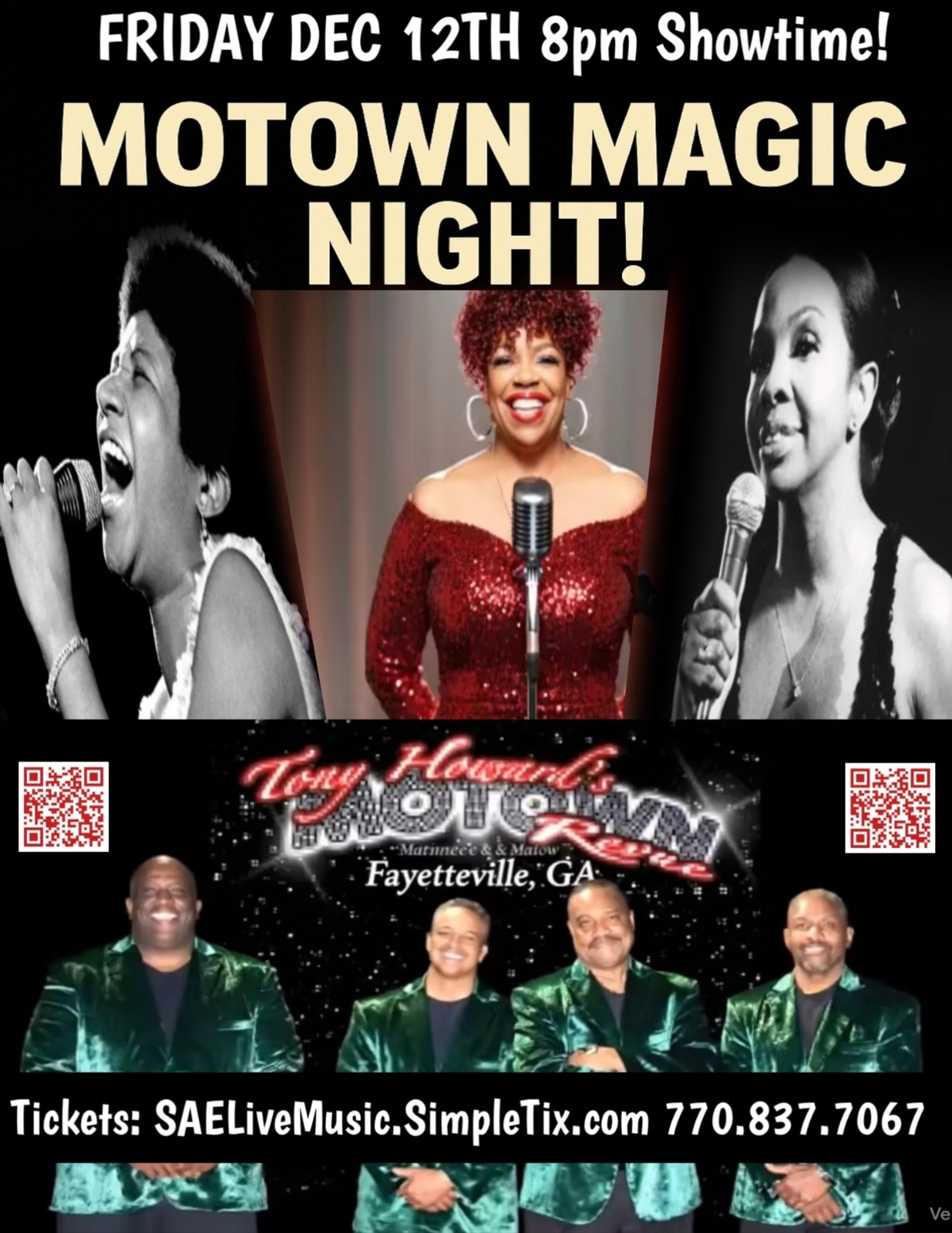 #MotownMagic #TonyHowardMotownRevue #L’TanyaSugarlipsShields #ArethaFranklinTribute #GladysKnightTribute #SAELiveMusic #FayettevilleGA #SimplyAwesomeEntertainment #HolidayPartyVibes #GrownAndSexyEvents
