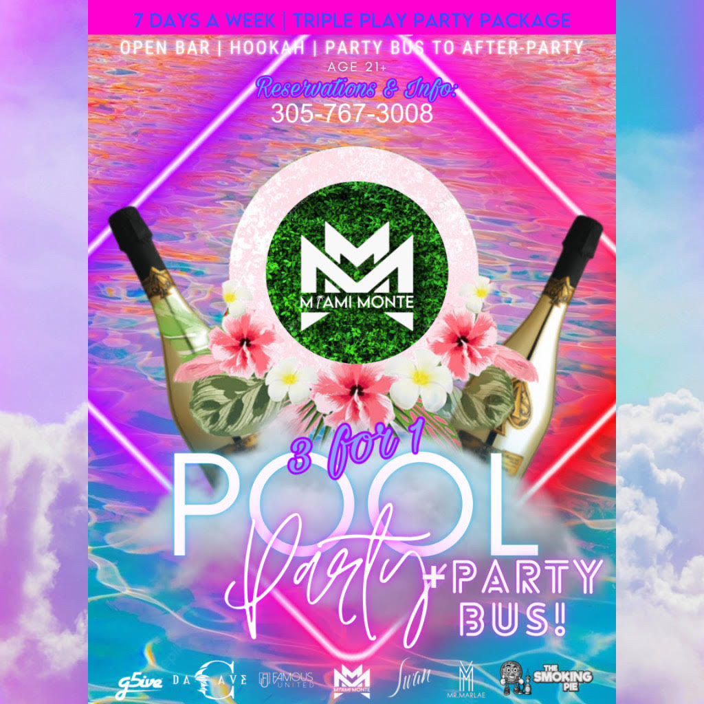 SUNDAY: Matilda’s 1hr poolside Open Bar + Hookah, Party Bus to Shots Wynwood or G5ive.