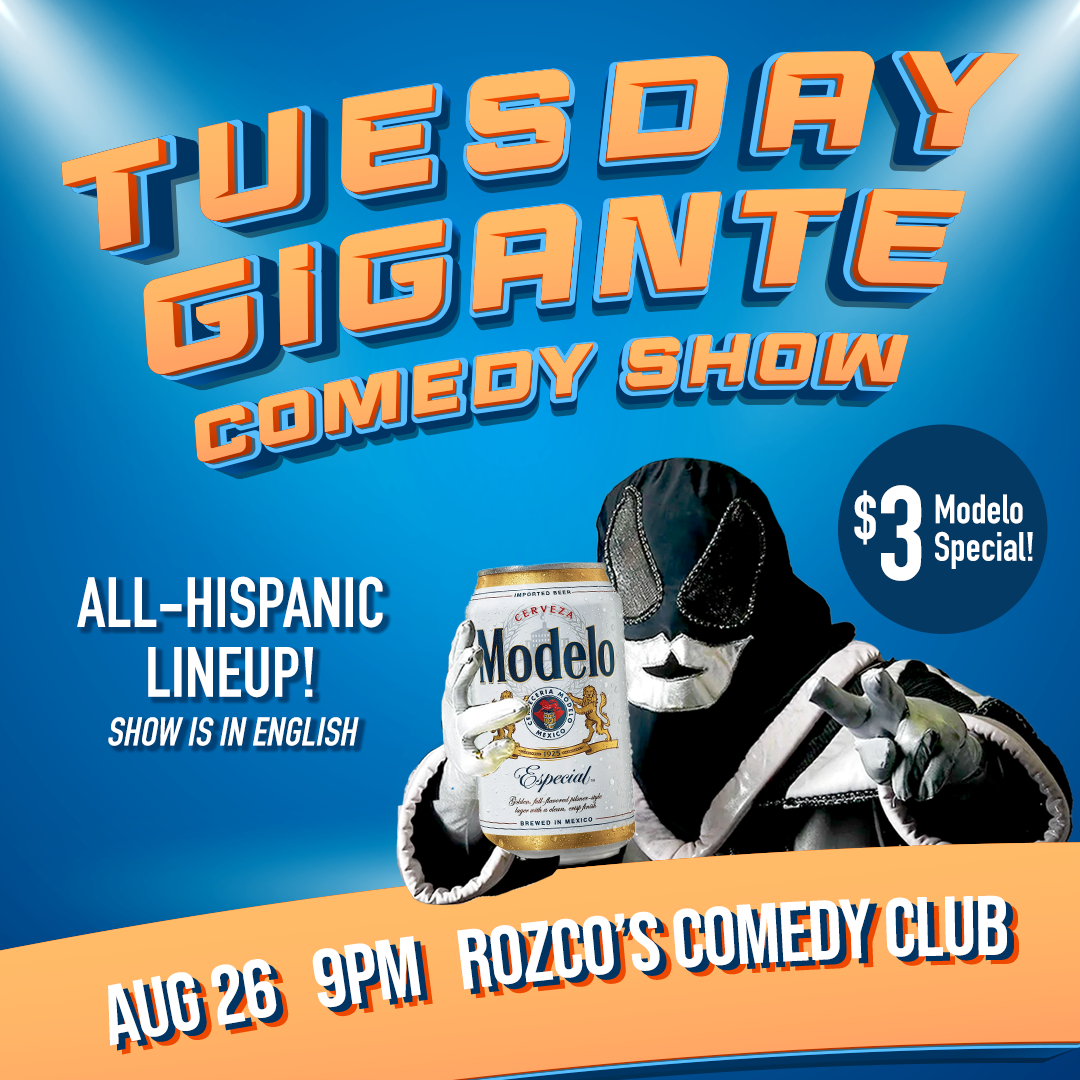 Tuesday Gigante features the funniest Hispanic comedians in Texas! The comedy show is in English but you will definitely jajaja.