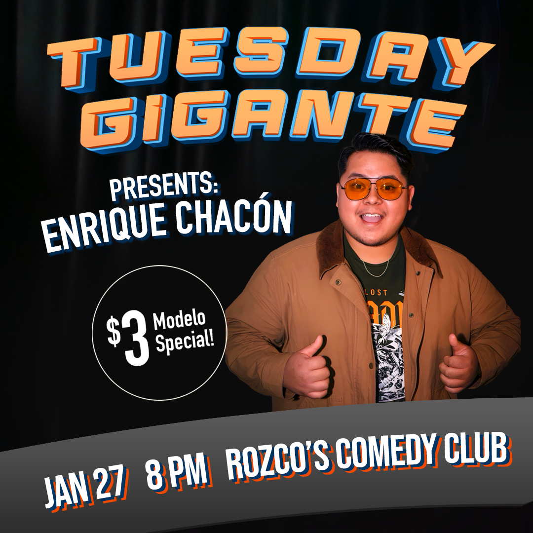 Enrique Chacón was introduced to the world of standup in 2018 via the Kill Tony Podcast and won a Golden Ticket his first time on stage. He’s based in Austin, Texas with roots tracing back to El Salvador. Over the years, Enrique has gained recognition from his multiple Kill Tony appearances. Enrique is passed as a regular performer at the esteemed Comedy Mothership, owned by Joe Rogan. Throughout his career, Enrique has opened for renowned comedians including Dave Attell, Tony Hinchcliffe, and Chris Distefano.