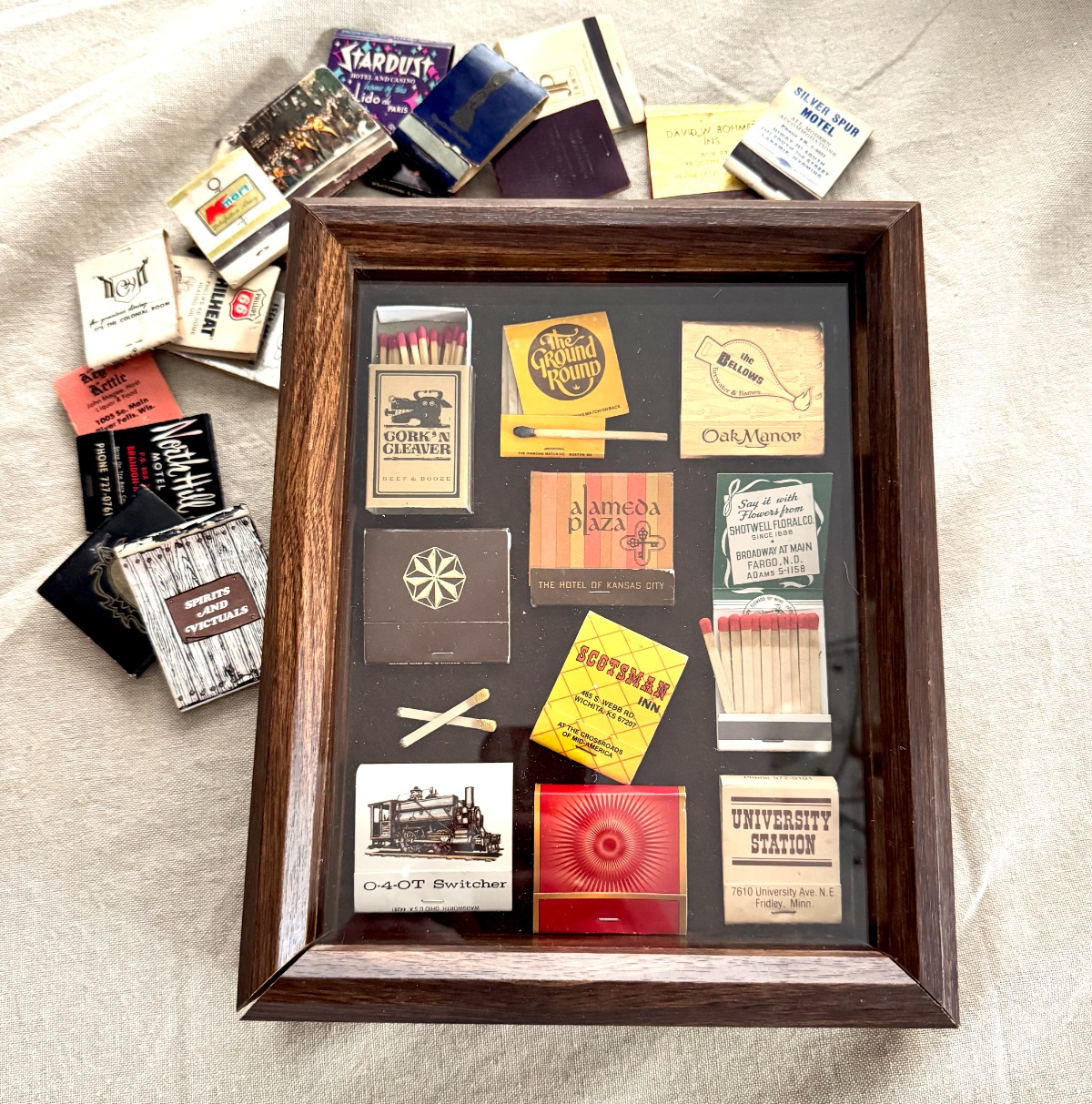 *Matchbox Framed Art! Sift through a dreamy collection of vintage matchbooks—each one a tiny time capsule from smoky lounges, roadside motels, and long-lost diners (that for sure had waffles)! With Hattie Gompf you’ll be a tricky minx curate your favorites into a framed shadow box that’s equal parts nostalgic and “stupid hot.”