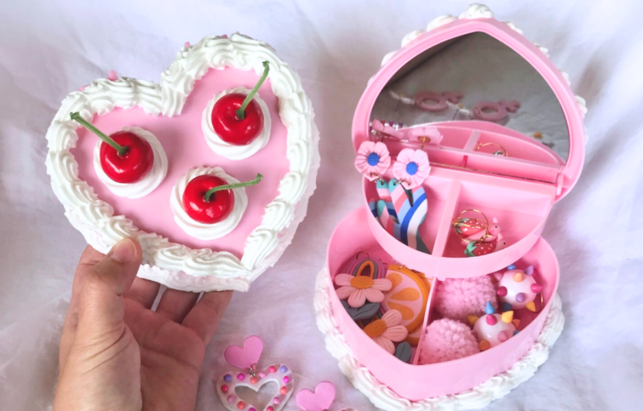 *Decoden Faux Frosted Trinket Heart Box!. This cream glue is all the rage and we obsessed over it this winter so now it's time to cake it up Galetines-style! You'll choose a pink trinket heart-shaped box to frost with faux frosting and faux cherries and strawberries with Kristina of Unglued/Yeobo Sweet Shop! But then you can “take our idea and make it better.” It's like a heart cake perfect for Leslie Knope - both dessert AND organizational vibes combined.