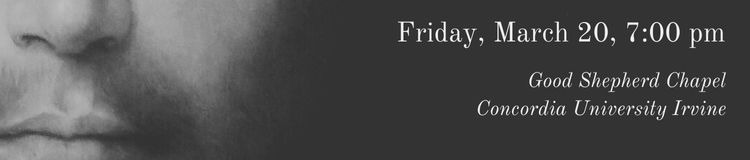 Location: Good Shepherd Chapel, on the campus of Concordia University Irvine (parking is free). Park in the ‘general parking’ or ‘main lot’ and walk to Good Shepherd Chapel (listed as #2 on the CAMPUS MAP)
