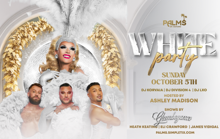 Join us for an electrifying night at Palms WHITE Party! Featuring Special Guest Hostess Ashley Madison and shows through the night by Ashley Madison & the cast of Palms GLAMBOYANCE production show Heath Keating, Eli Crawford & James Vidigal.