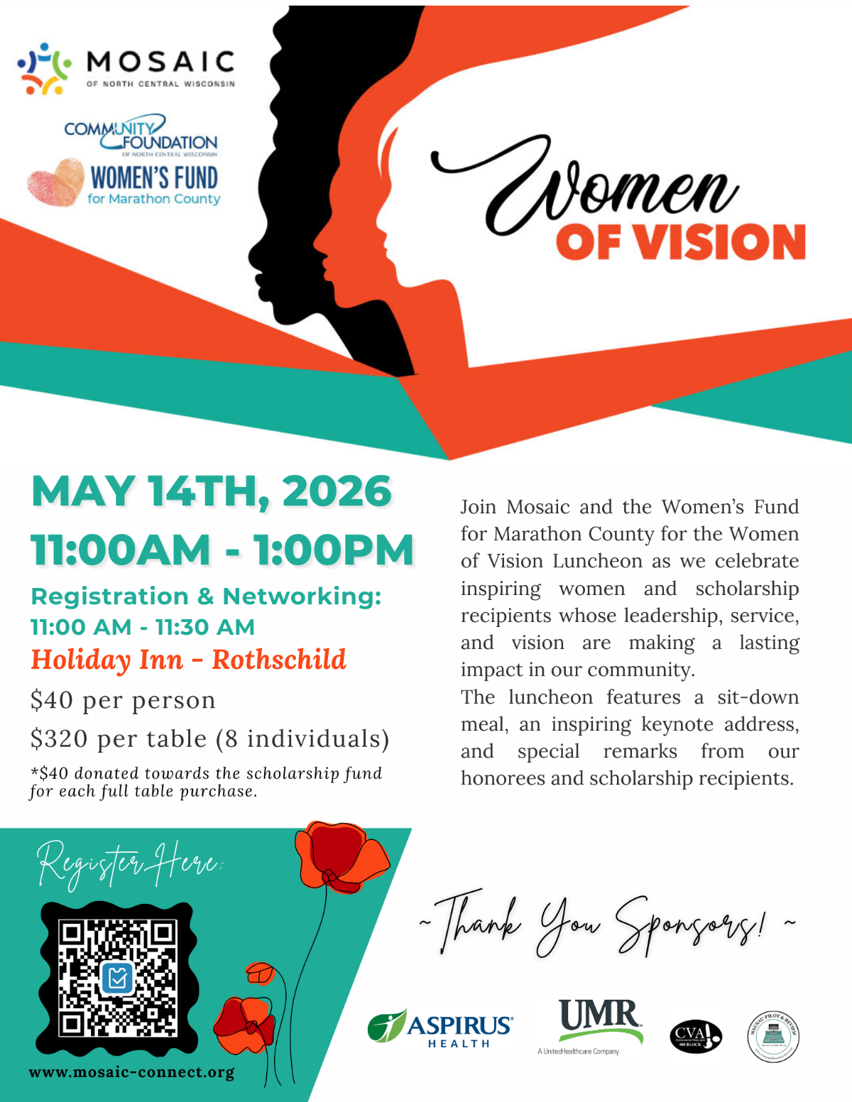 Mosaic of North Central Wisconsin's Mission is to ensure North Central Wisconsin is the place individuals choose to live and work because differences are embraced; individuals feel connected, valued, and supported; and there is a strong sense of belonging.