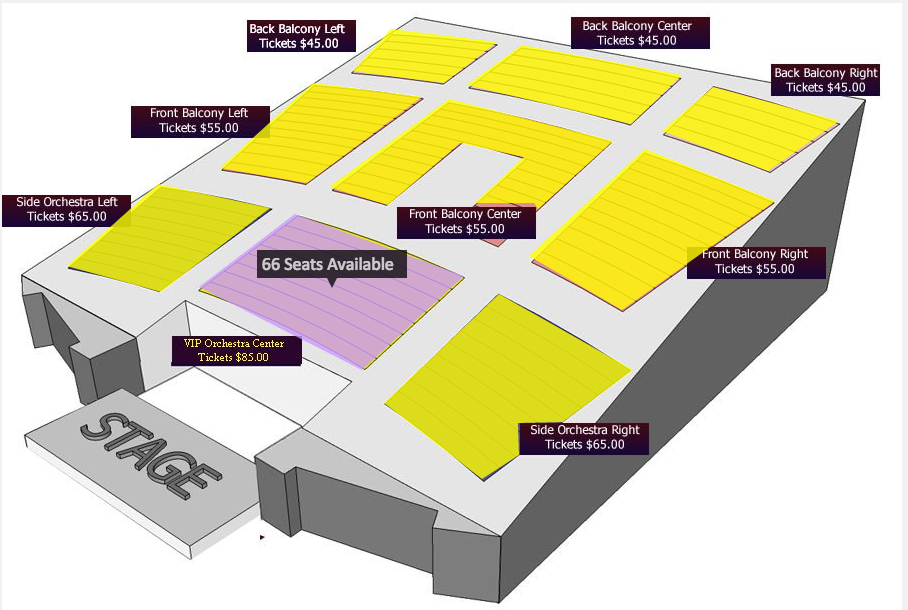 As you hover over a section you can see how many seats are available in that section. These even update in real-time, as soon as anyone else buys a seat, the number instantly updates.
